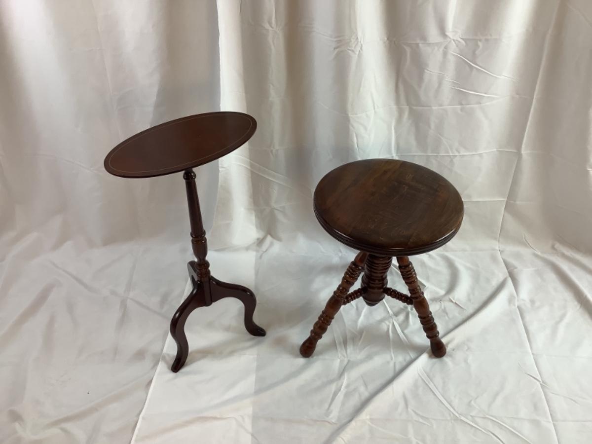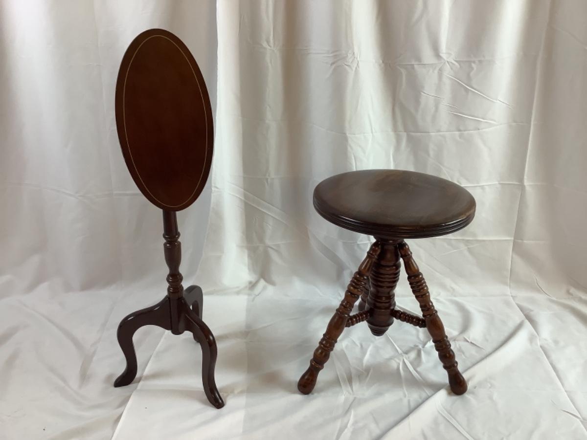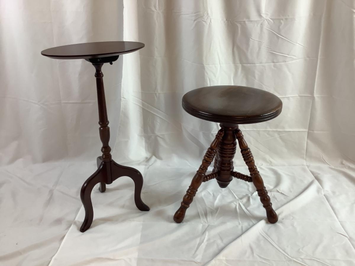 C1259 Mahogany Tilt Top Candle Stand and Piano Stool