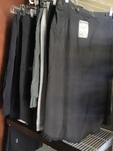 Mostly black or gray skirts, some have a relaxed fit others don't. There is a mix here.