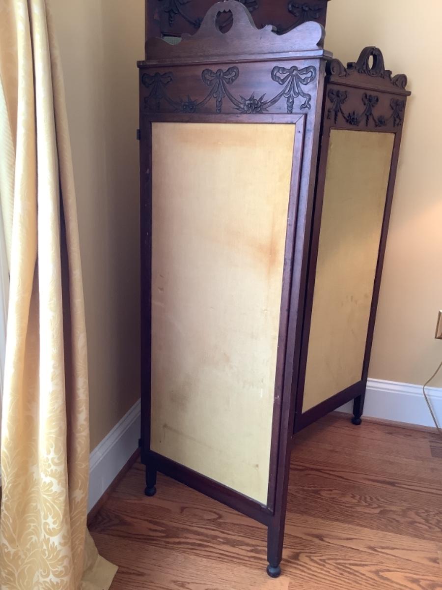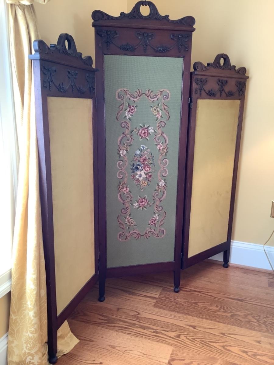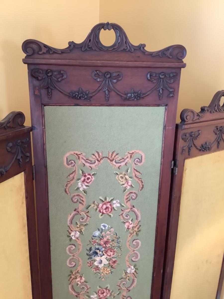 C1274 Antique Victorian Needlepoint Walnut Dressing Screen