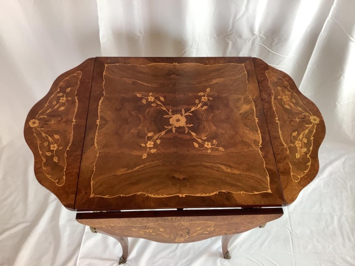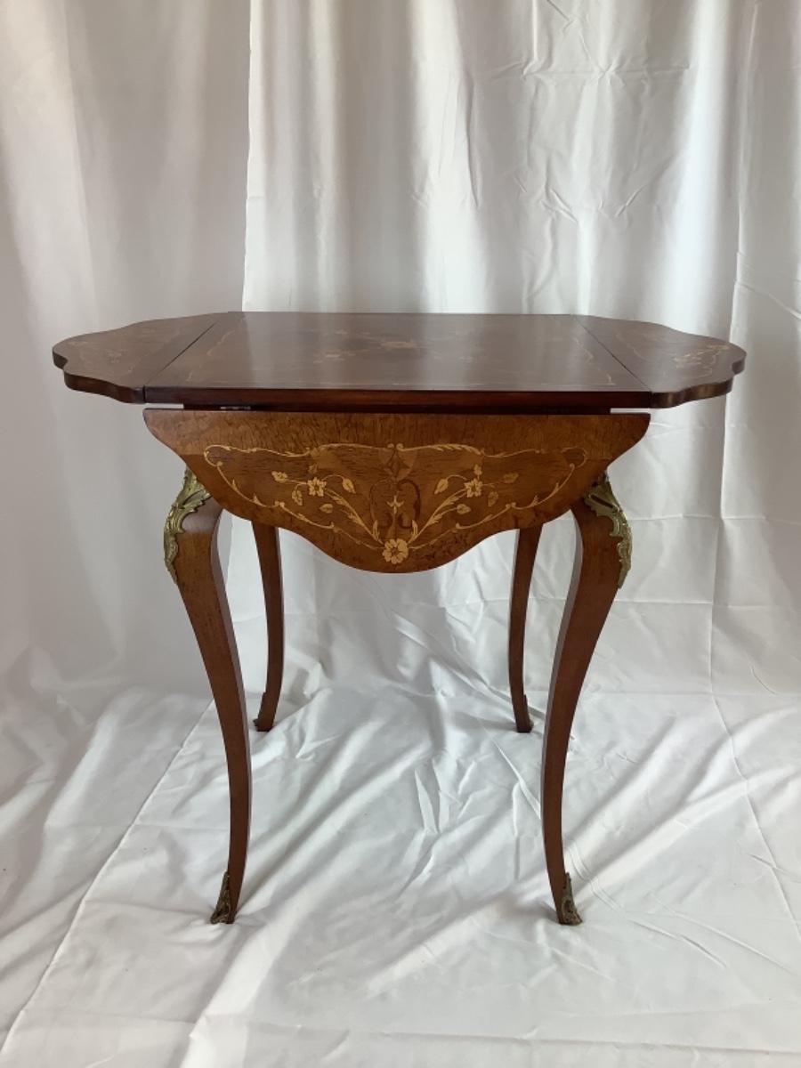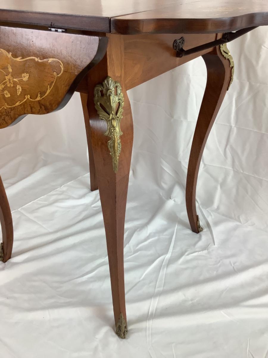 C1280 Antique French Louis XV Inlay Drop leaf Table