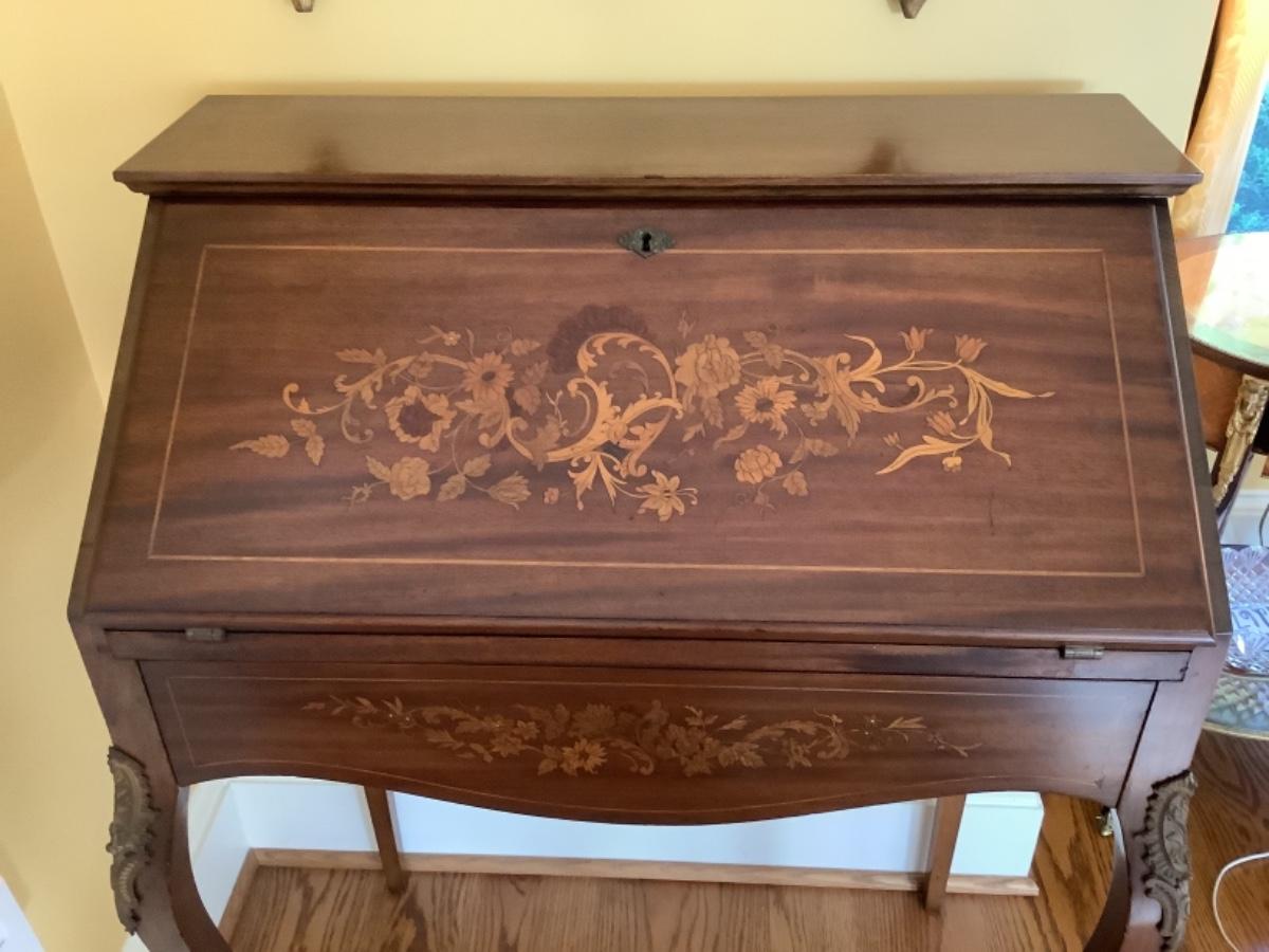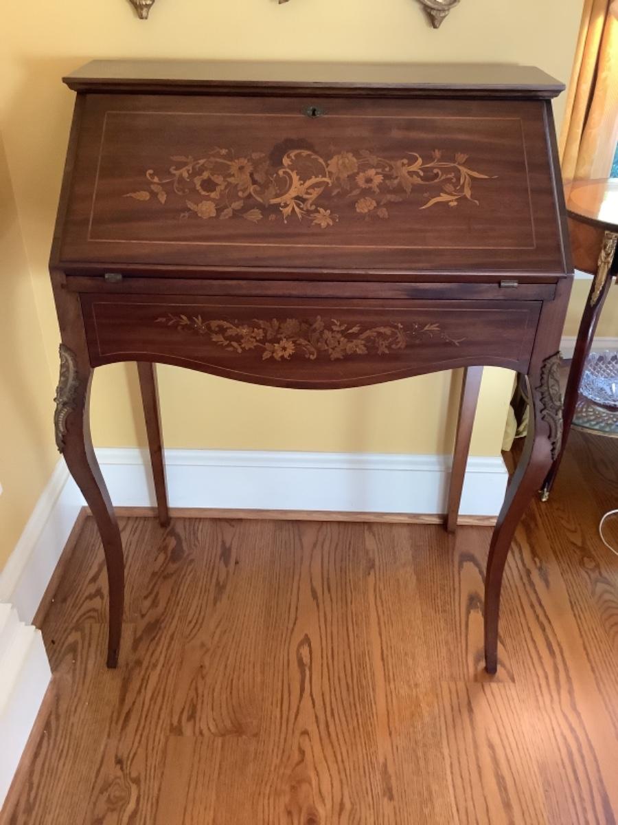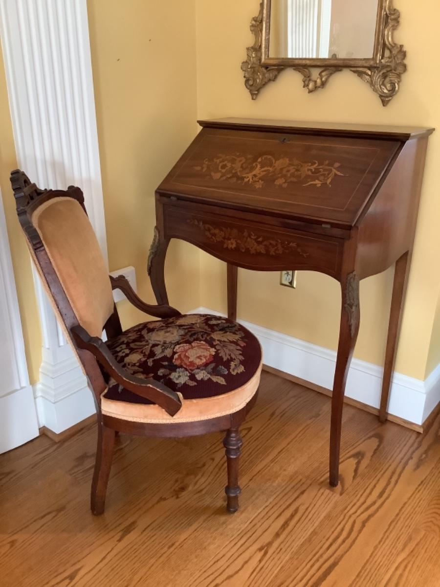 C1282 Antique Louis XV Style kFrench Inlay Slant Front Desk with Chair