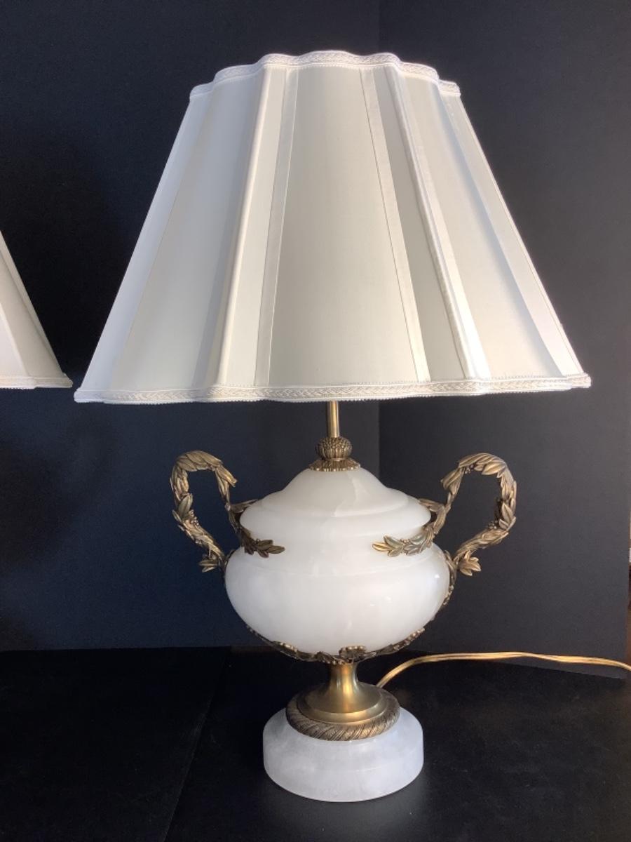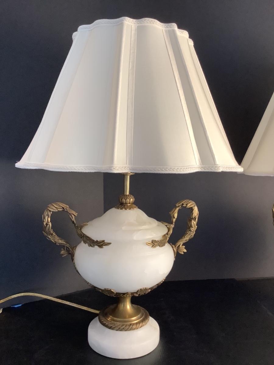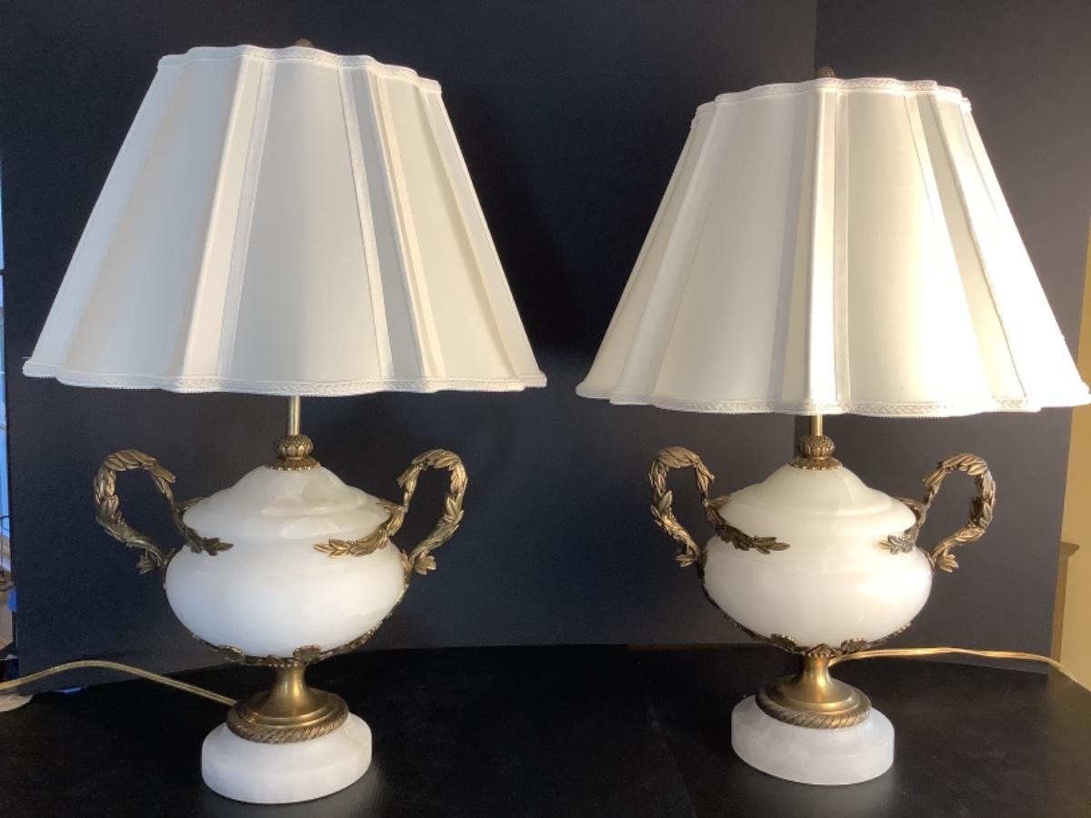 C1287 Pair of Vintage Louis XV Style Marble Urn Lamps