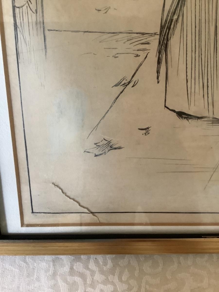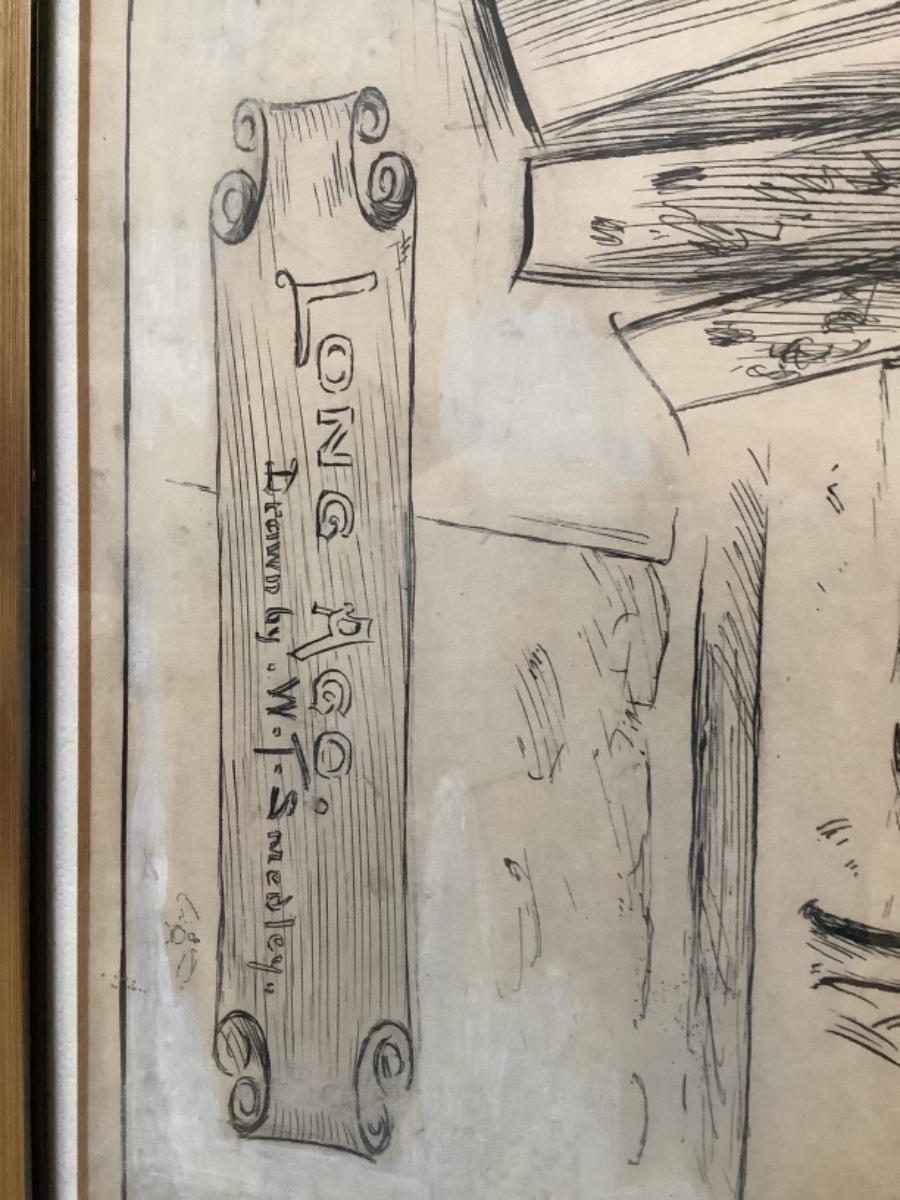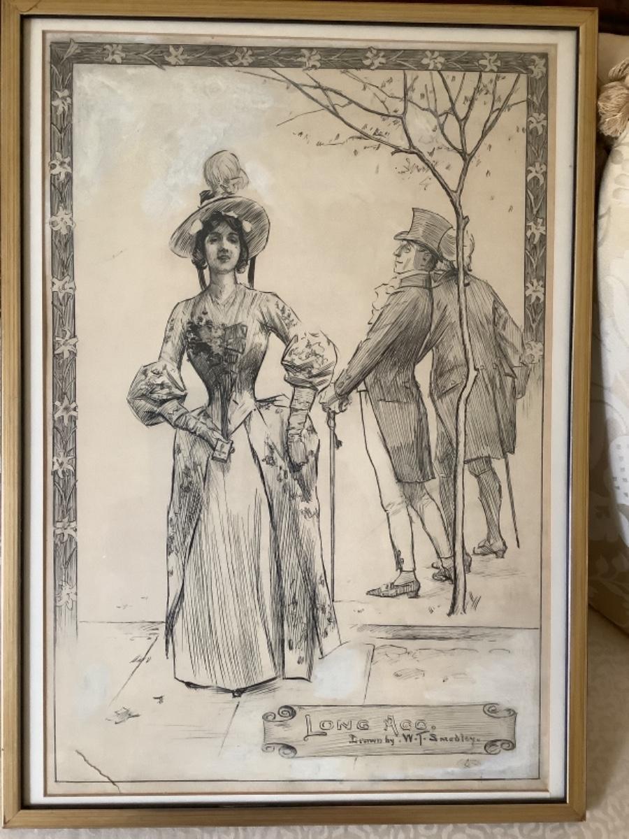 C1292 Antique Black and White Sketch “ Long Ago “ by W.T. Smedley