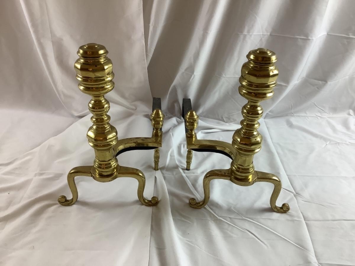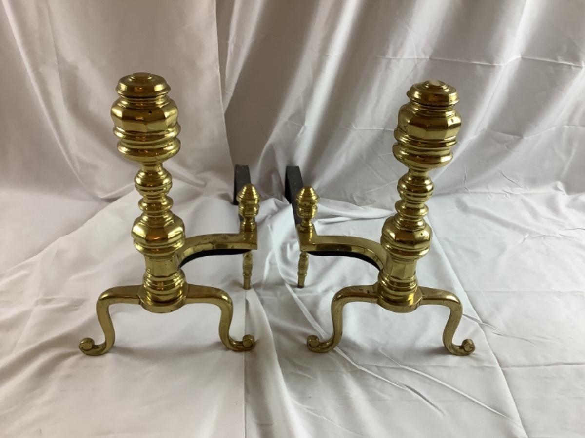 C1303 Pair of Brass Federal Style Andirons