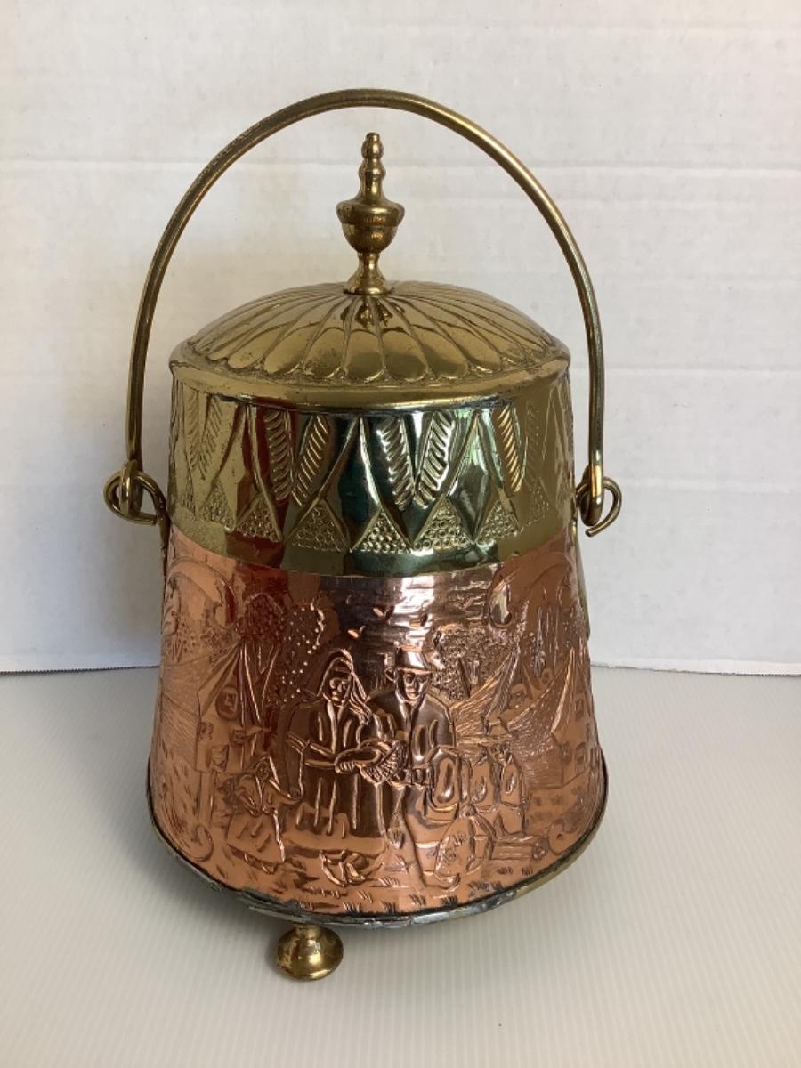Antique 19th Century Dutch Copper and Brass 3 footed Ash Bucket