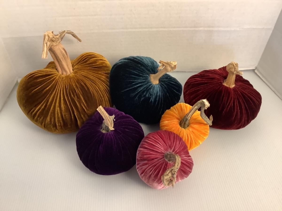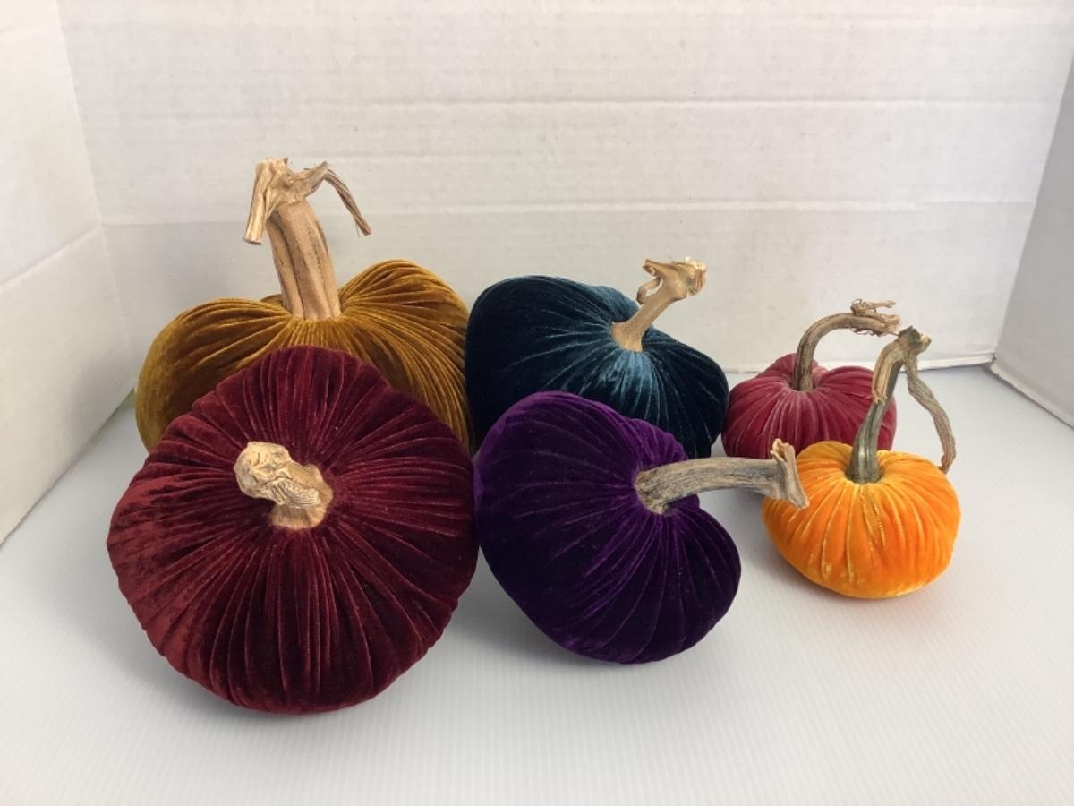 C1306 Vintage Hand Crafted Velvet Pumpkin Decor with Real Stems