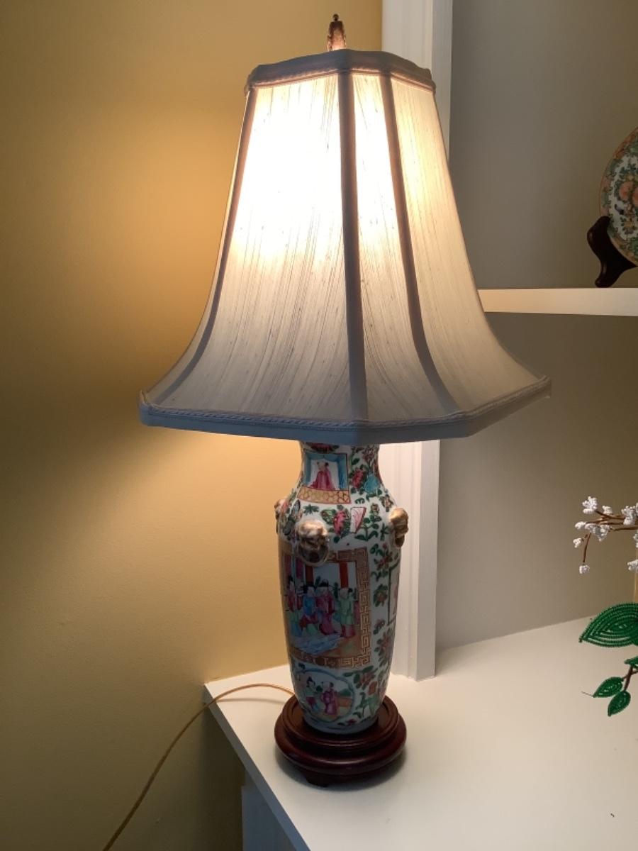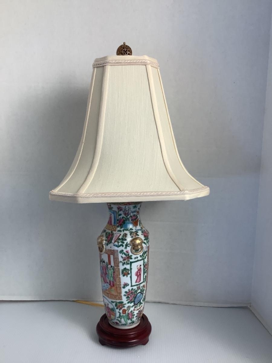 C1313 Antique Rose Medallion Lamp with Wood Carved Finial