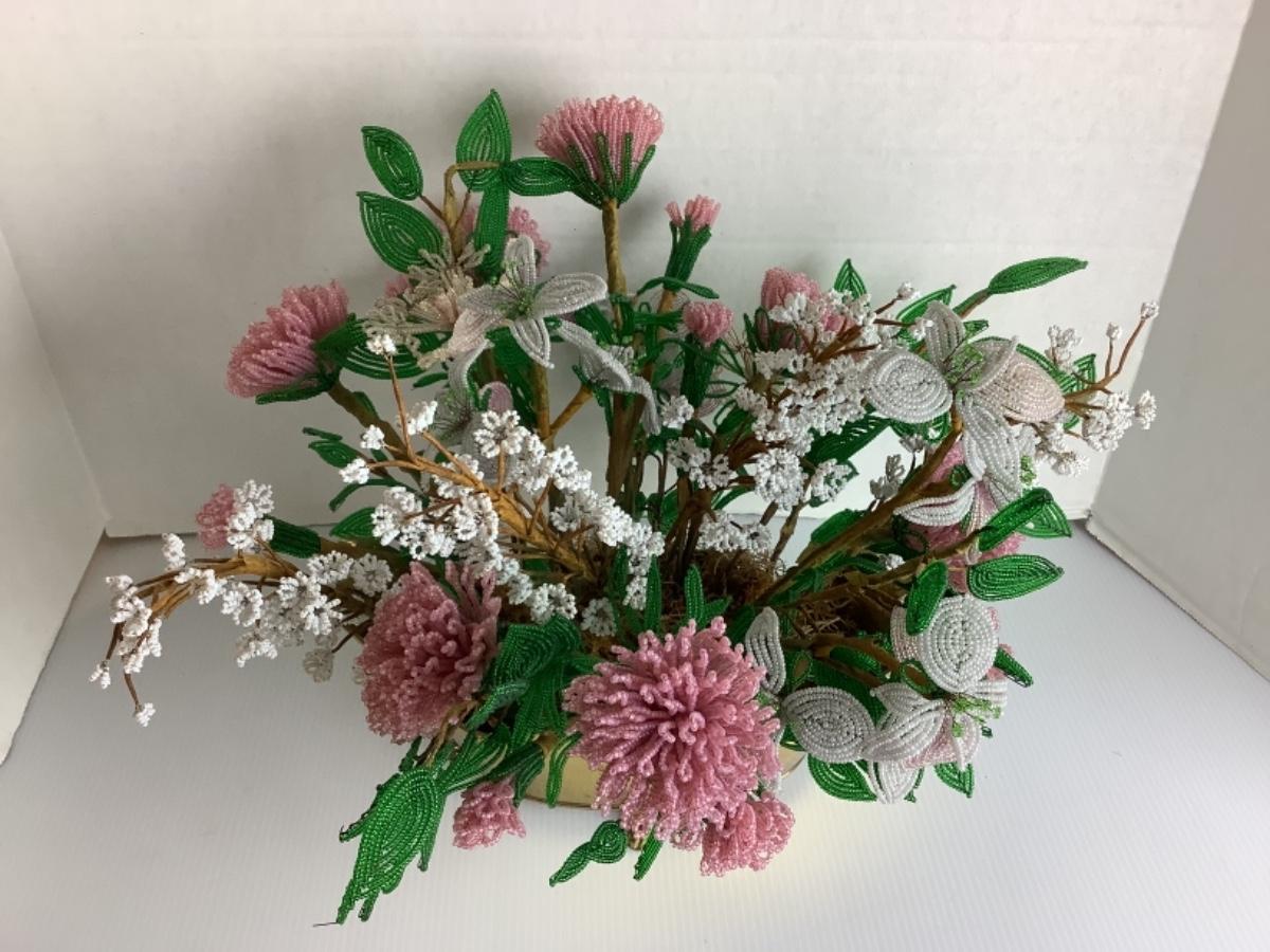 C1314 Handmade Vintage French Seed Beaded Floral Arrangement