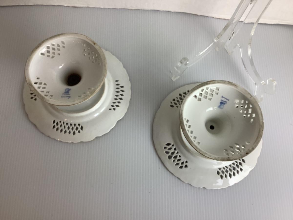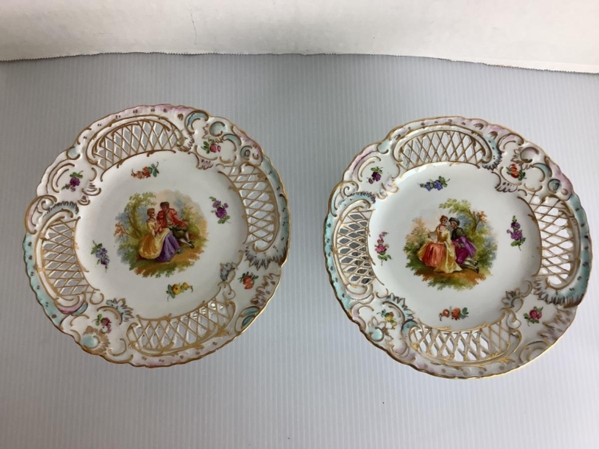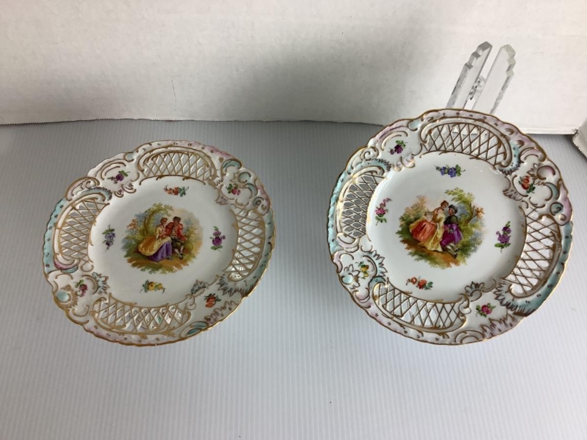 C1315 Pair of Antique Dresden Reticulated Pedestal Dishes