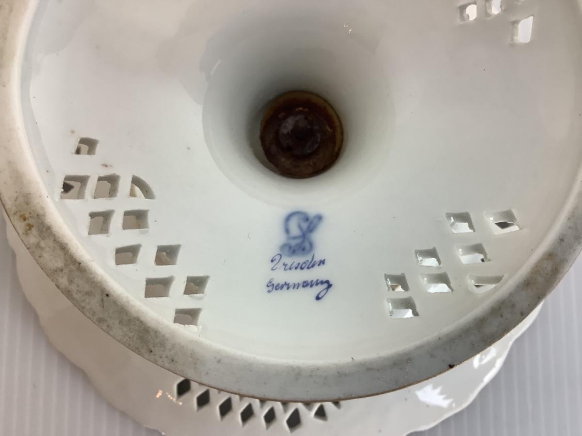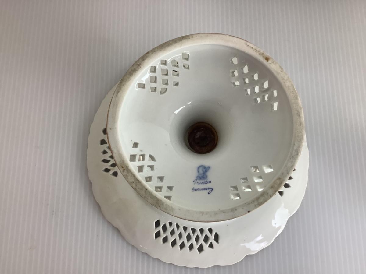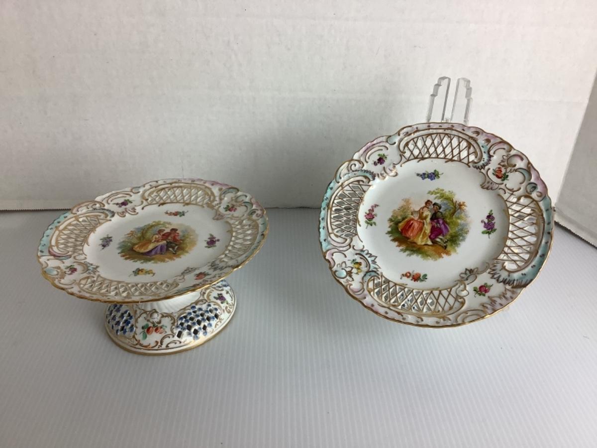 C1315 Pair of Antique Dresden Reticulated Pedestal Dishes
