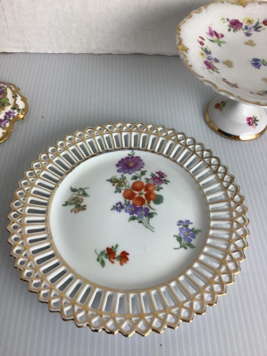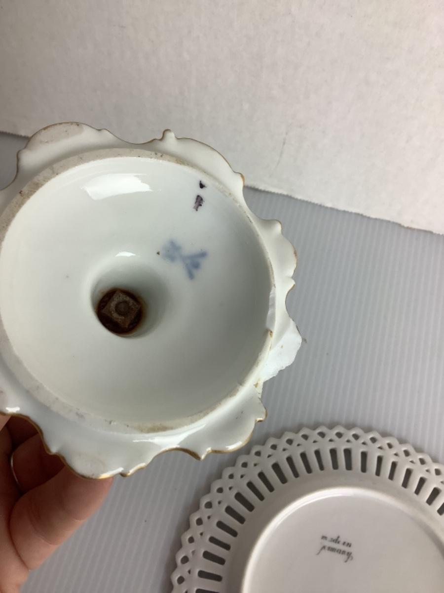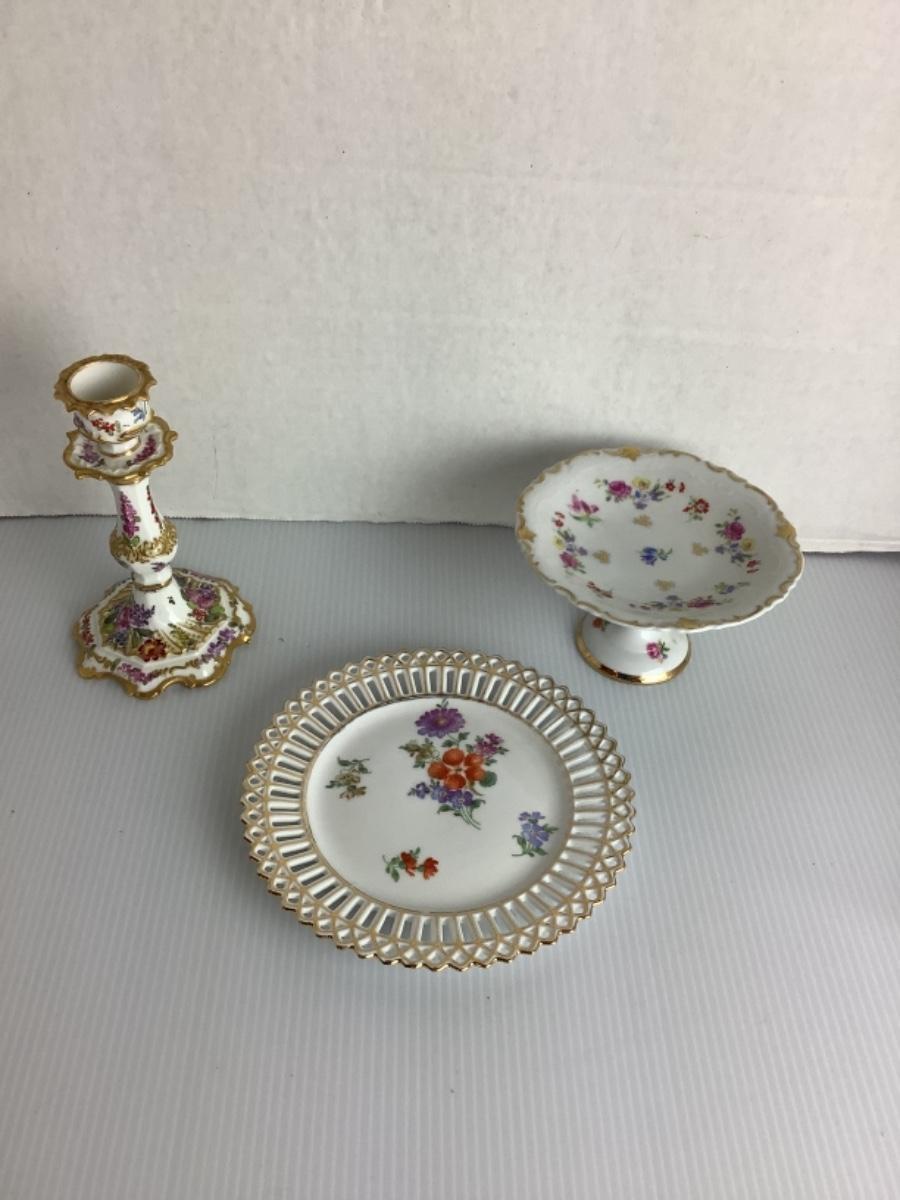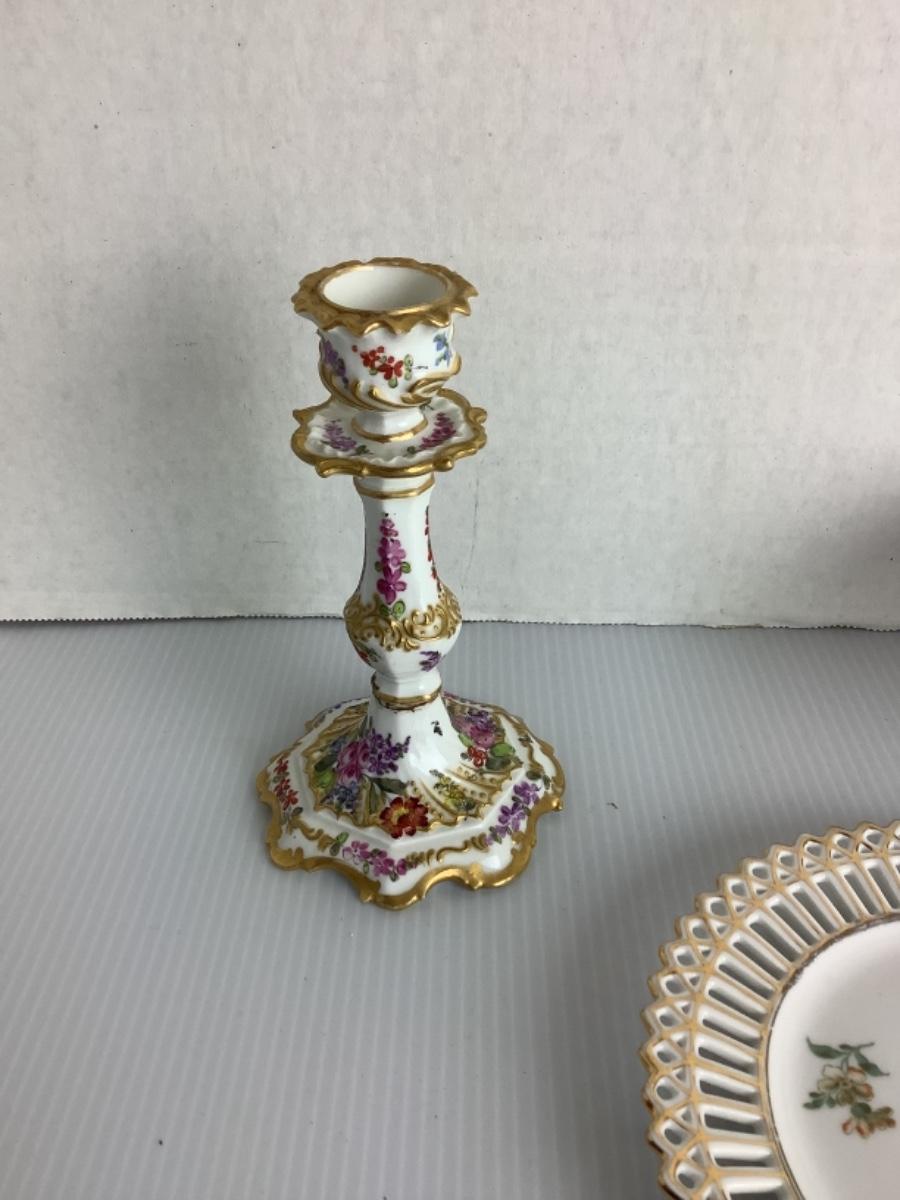 C1316 Antique Meissen CandleStick , Compote Dish , Reticulated Plate