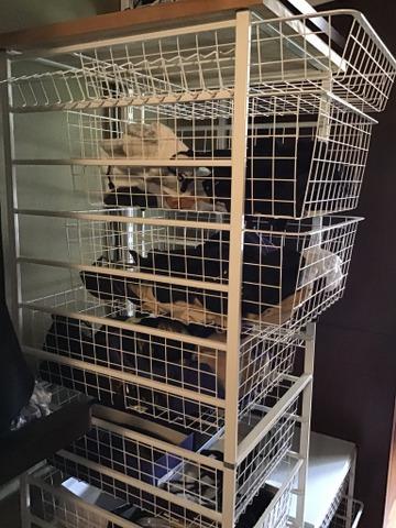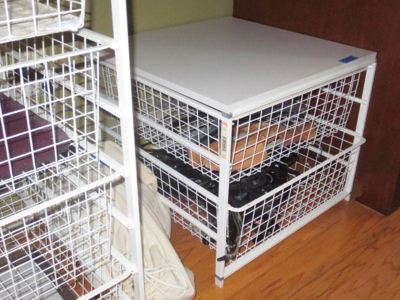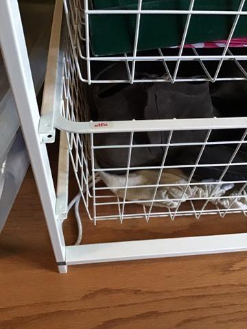 The large size features 9 pull-out baskets with hooks available on both sides to hand your belts or purses.