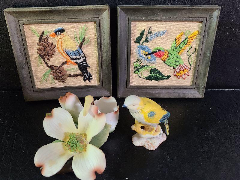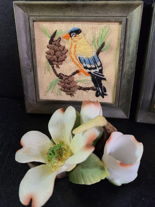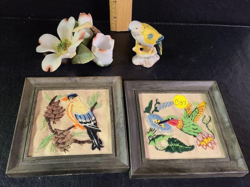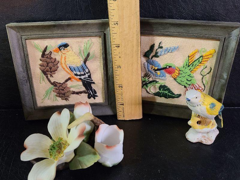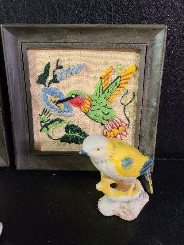 These cute little vintage plastic frames hold hand done birds. Please see pics for condition and sizing