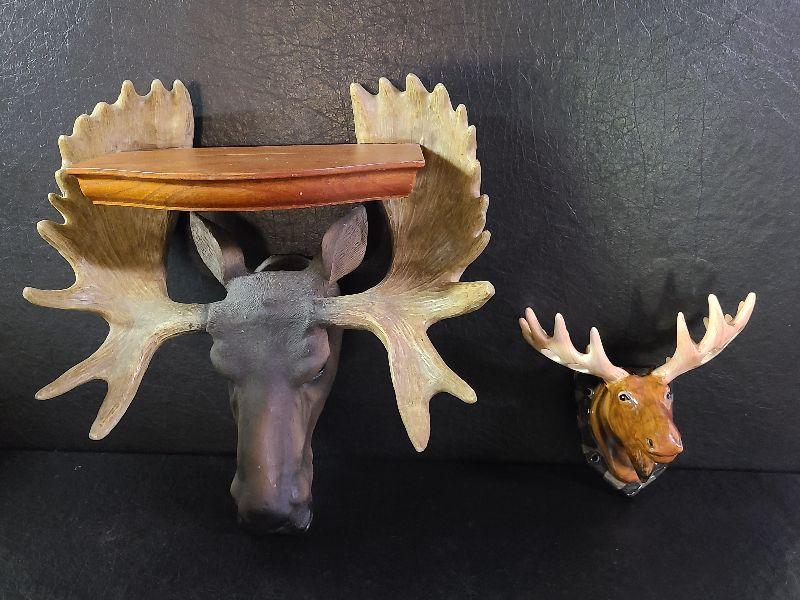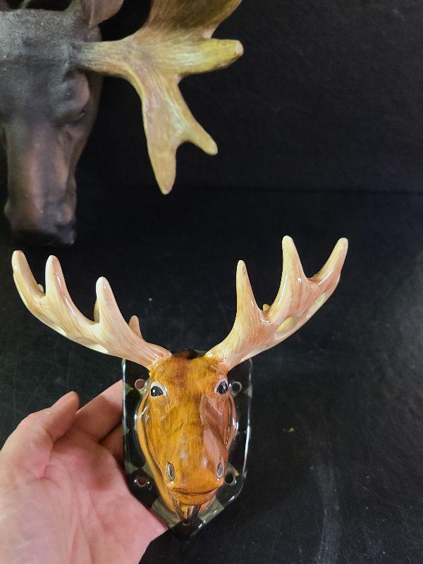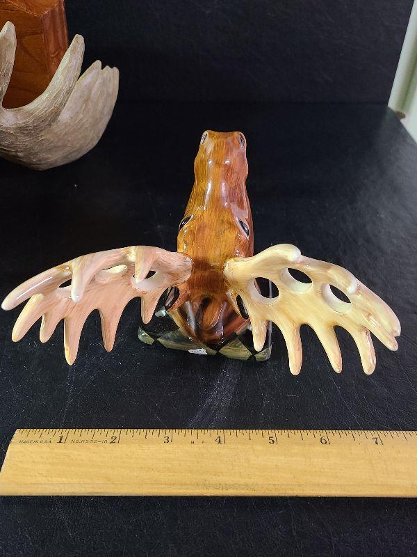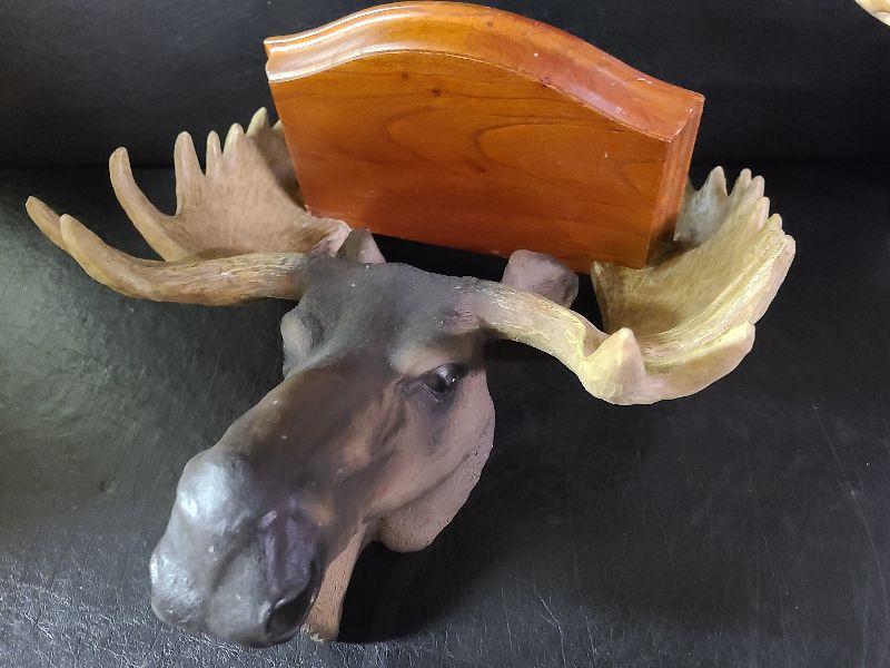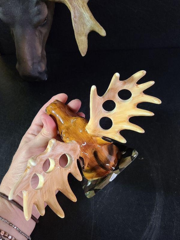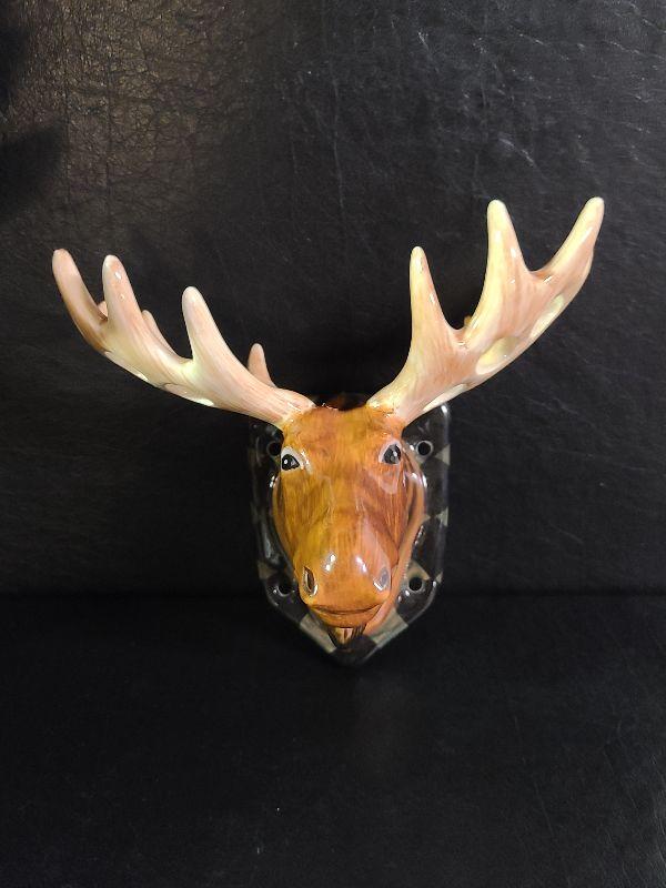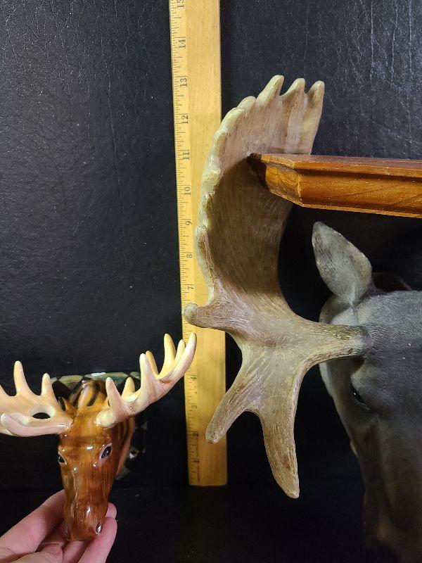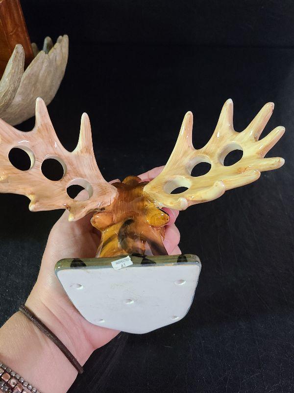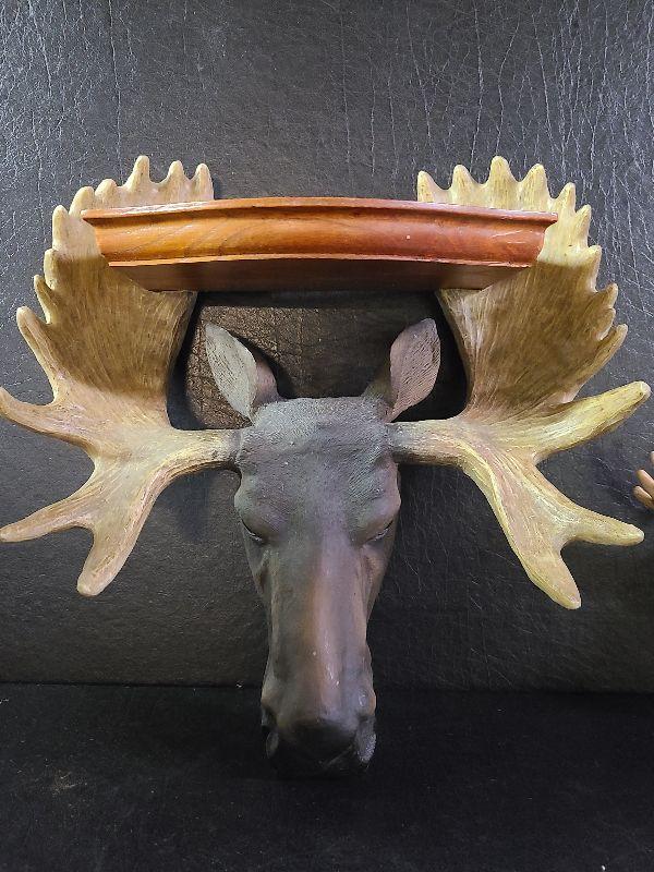This is a fun lot for the Moose enthusiast. Wall shelf and a ceramic toothbrush holder. Please see pics for sizing and condition