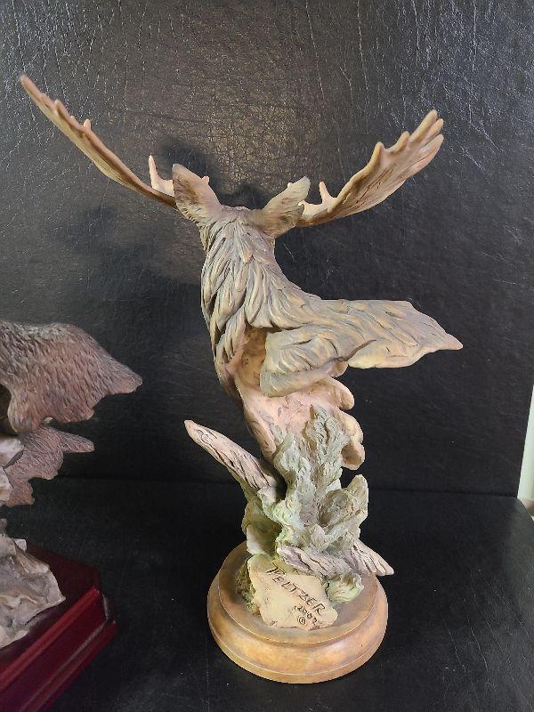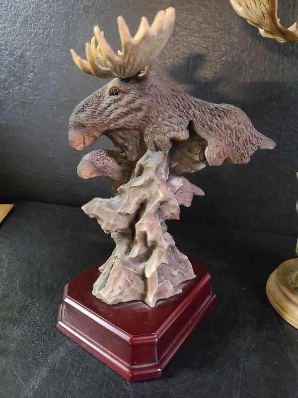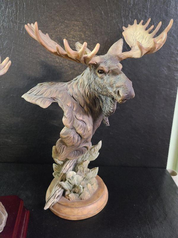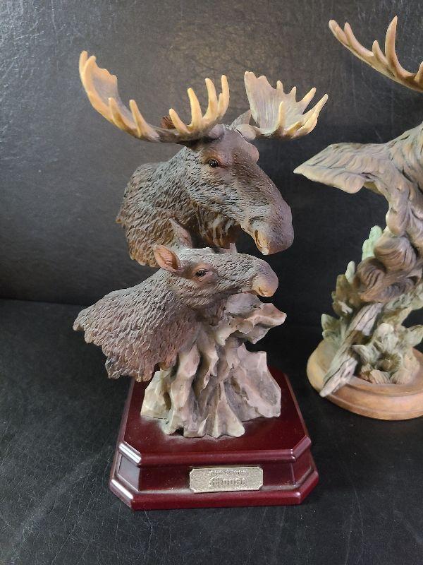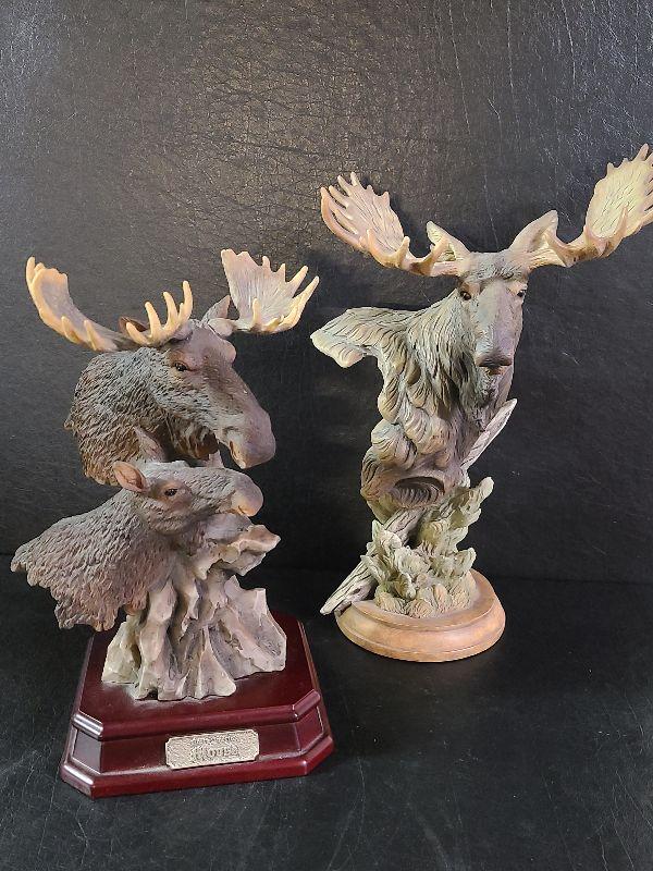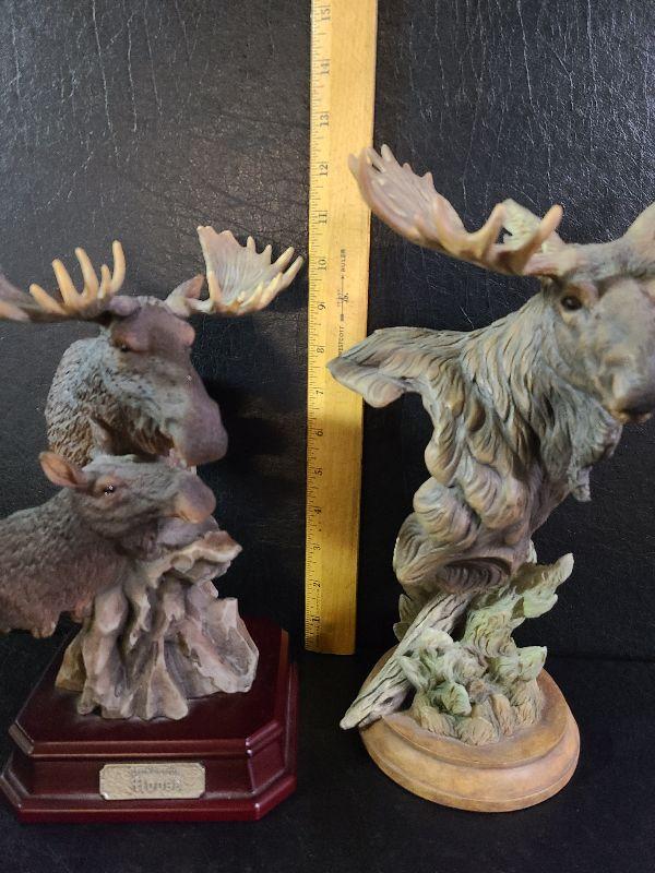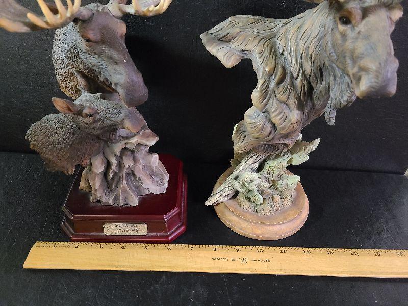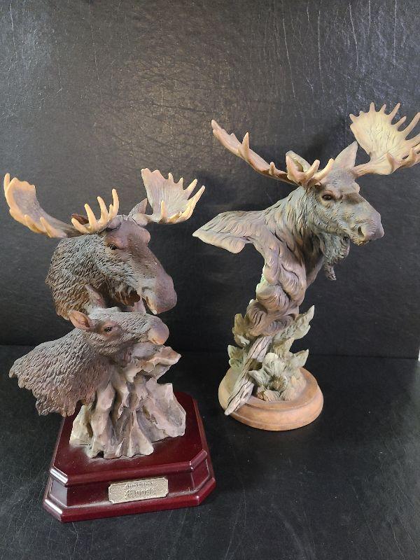 Collectible Moose Sculptures! One is artist signed Peltzer and is from Mill Creek Studios! Not sure what these are made of. Please see pics for sizing and condition