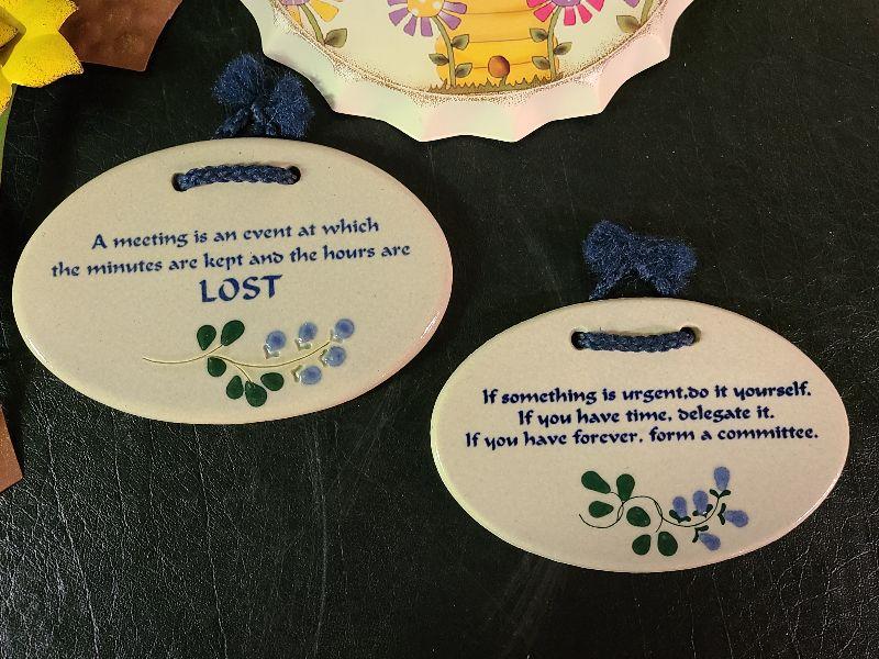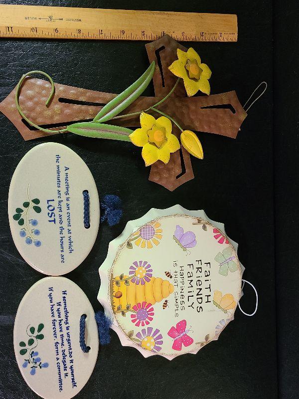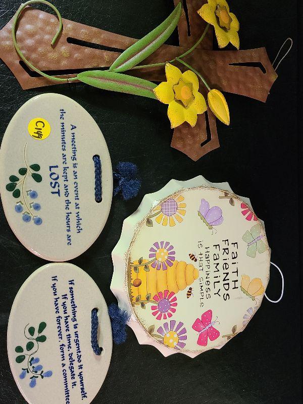 Nice lot of hanging signs for decoration. Please see pics for sizing and condition