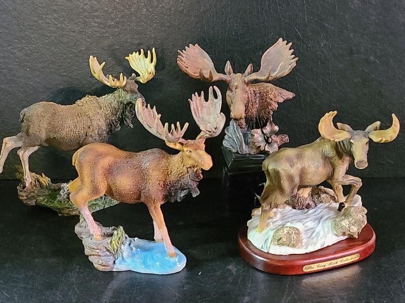 Nice lot of Statues of Moose. These are medium in size and very nice collectibles. Please see pics for sizing and condition