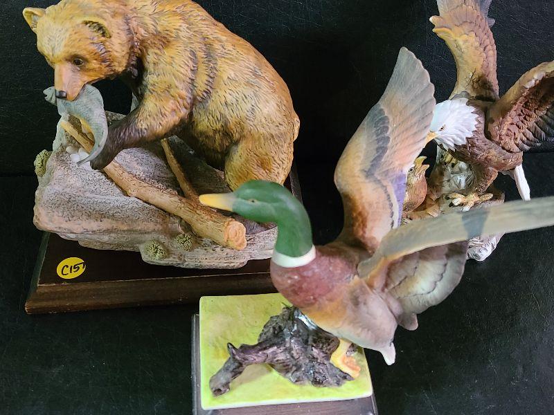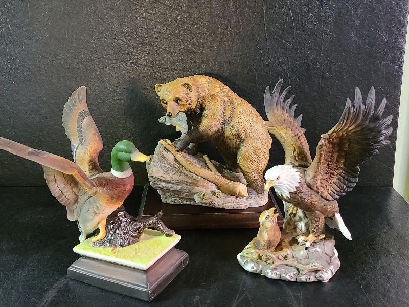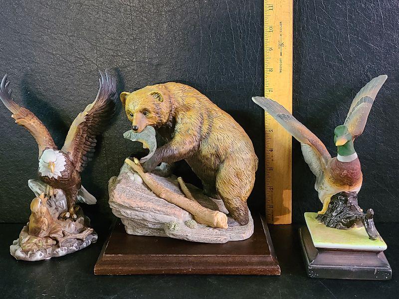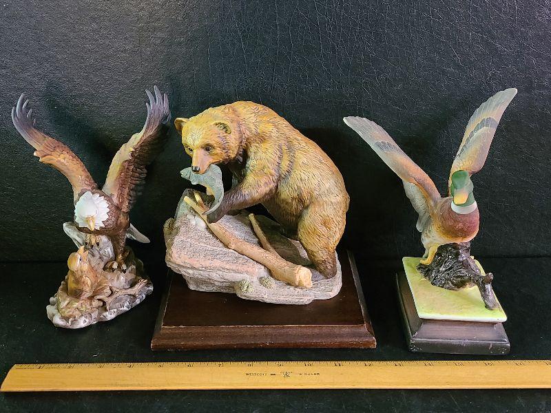 C157: Bear, Eagle, and Duck Statues. Medium in size