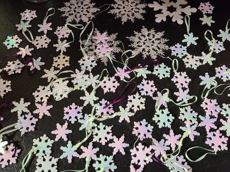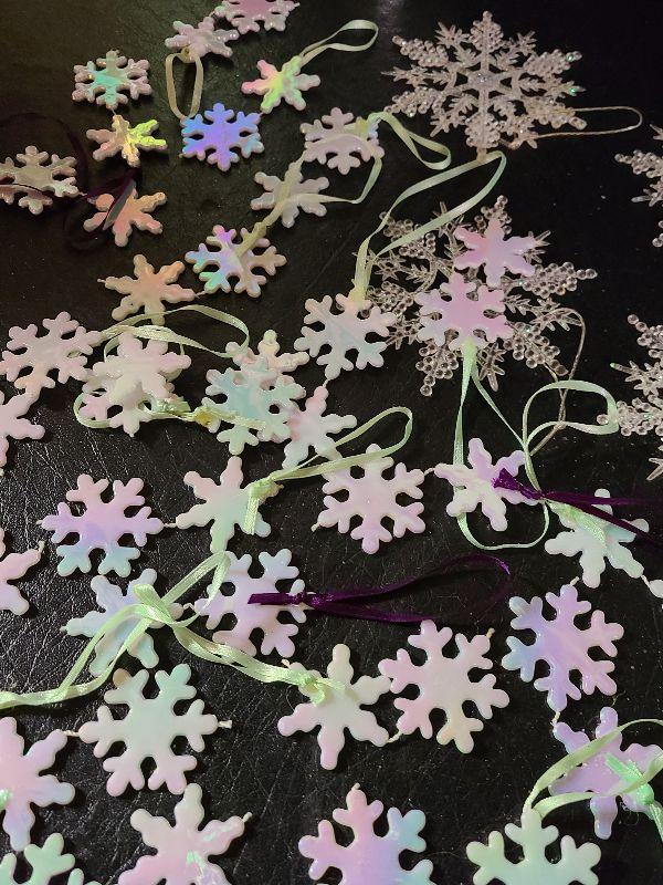 This is a lot of plastic ornaments. Great for crafting, tree or table decorations. Please see pics for sizing and condition