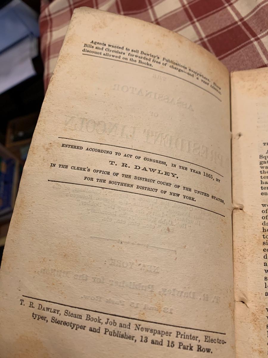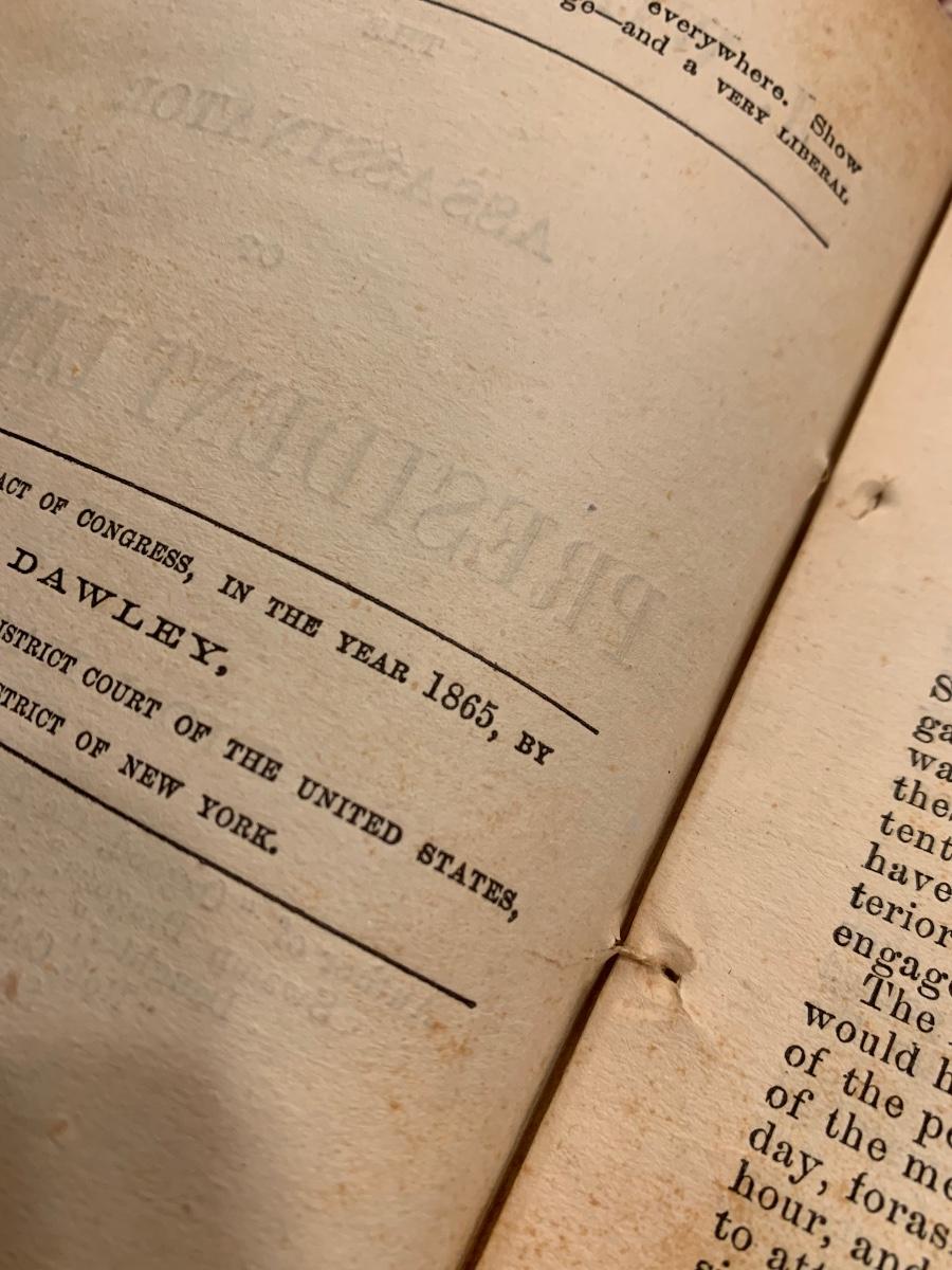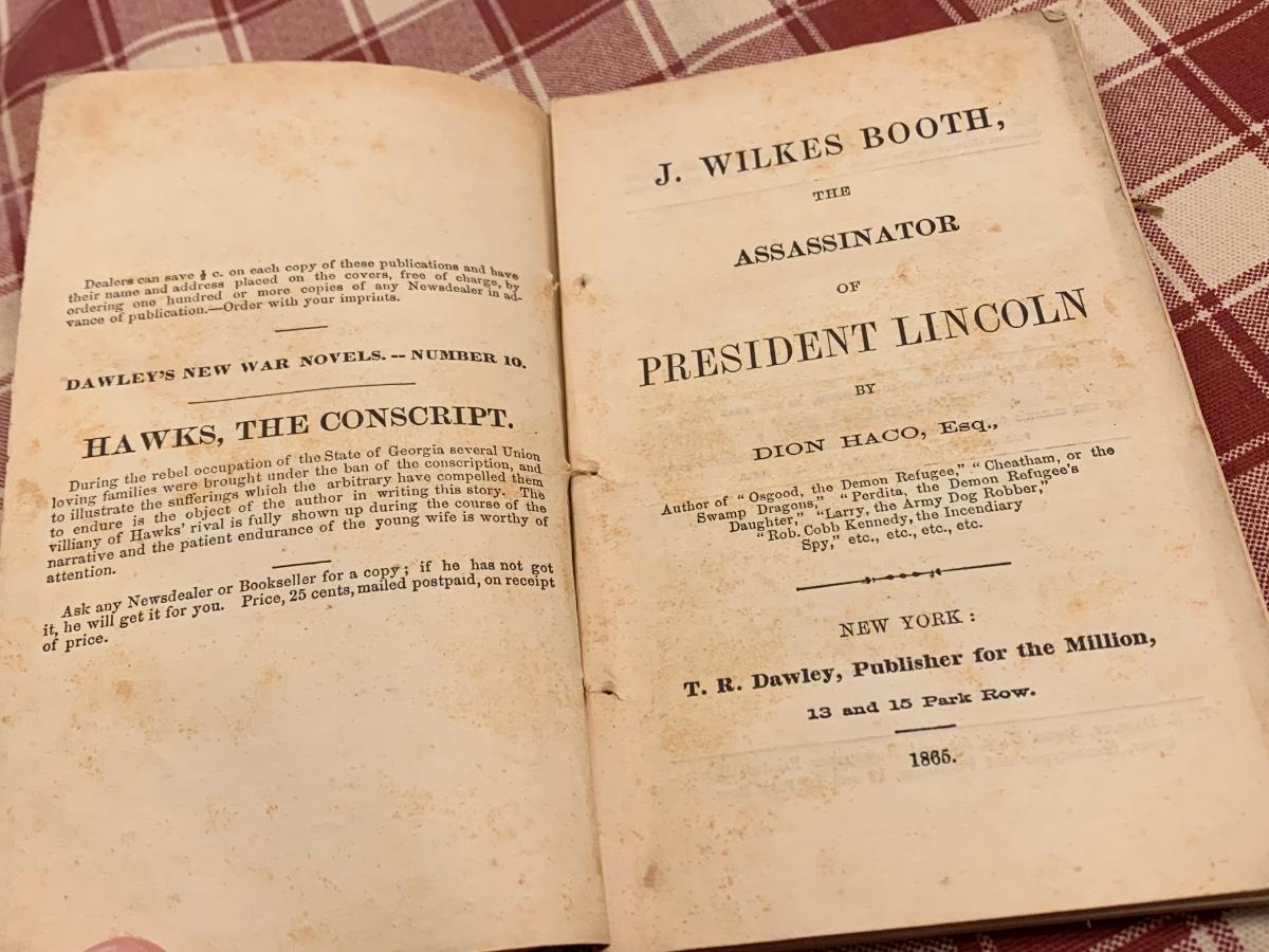 c.1865 Lincoln Assassination John Wilkes Booth by Dion Haco T. R. Dawley Authentic Dime Novel