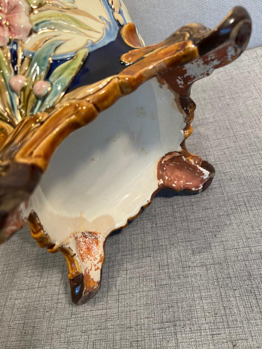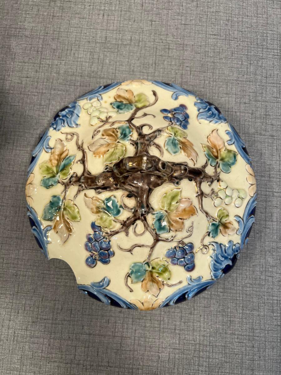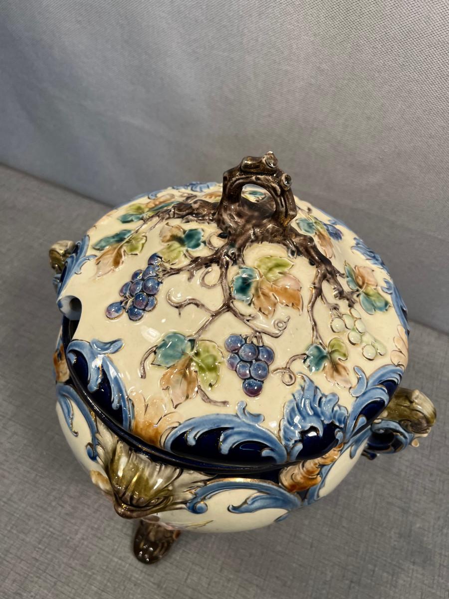 C.1890 Majolica Soup Tureen Cherubs, Fish, Grape Leaves