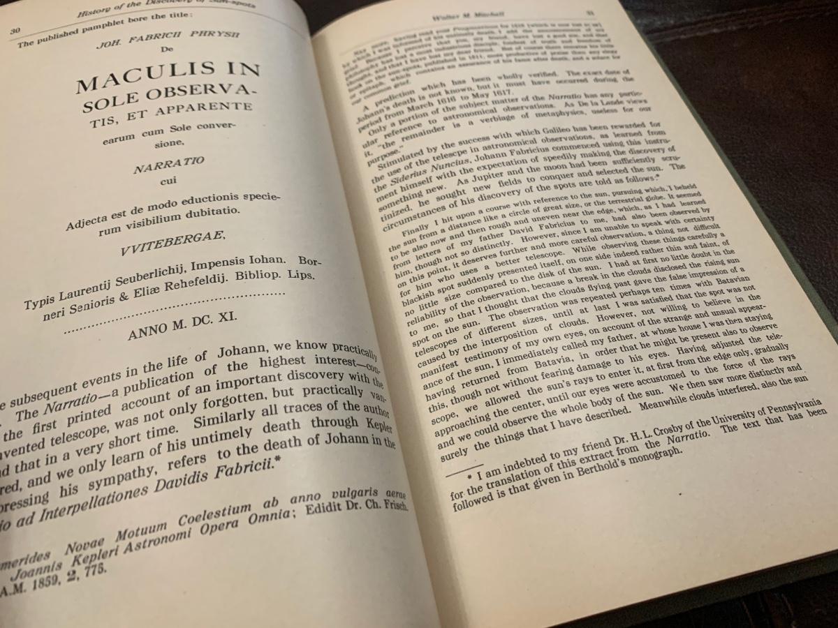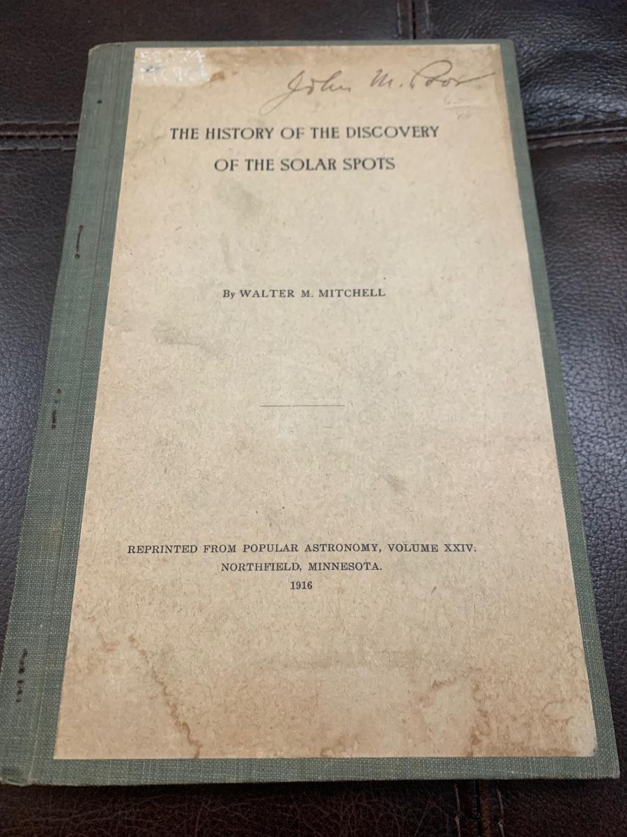 c.1916 History of Discovery of Solar Spots by Walter Mitchell POPULAR ASTRONOMY