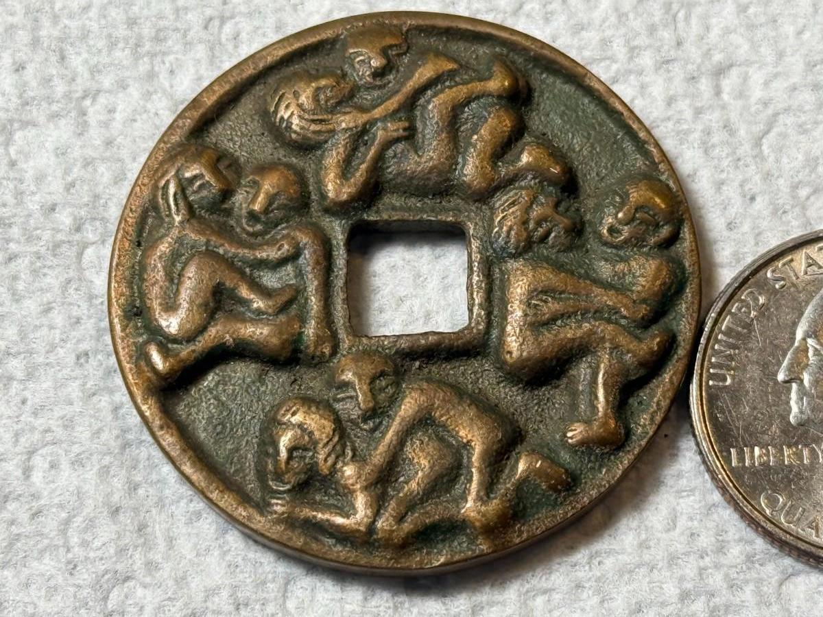 c1950's Chinese Wedding or Brothel Love Charm Erotic Amulet Wedding Token 1.5" Diameter as Pictured. $5 Domestic Shipping.