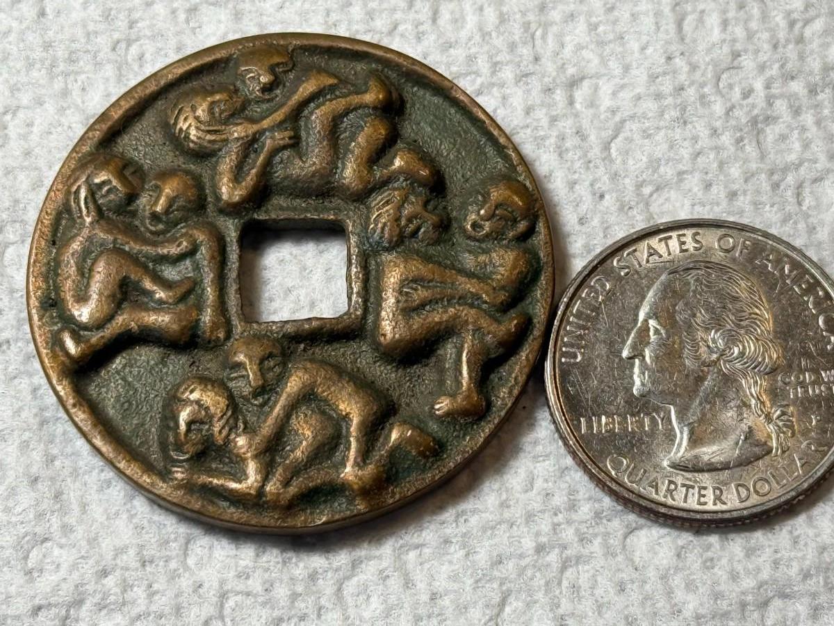 c1950's Chinese Wedding or Brothel Love Charm Erotic Amulet Wedding Token 1.5" Diameter as Pictured. $5 Domestic Shipping.
