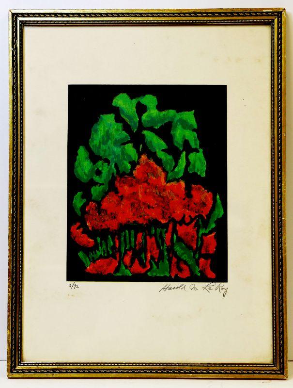 Harold M. Le Roy born 1905, listed NYC Artist, abstract original signed and numbered serigraph in frame. Image - 8" x 10", frame with glass front - 14" x 18.5" - RARE COLLECTOR'S ITEM!