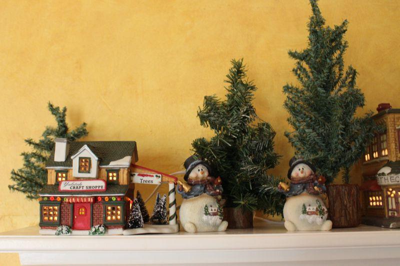 C-2 Lot of Christmas-4 Cottages 4 Snowmen -Trees-Craft Shoppe Church Post Office-Toy Shop