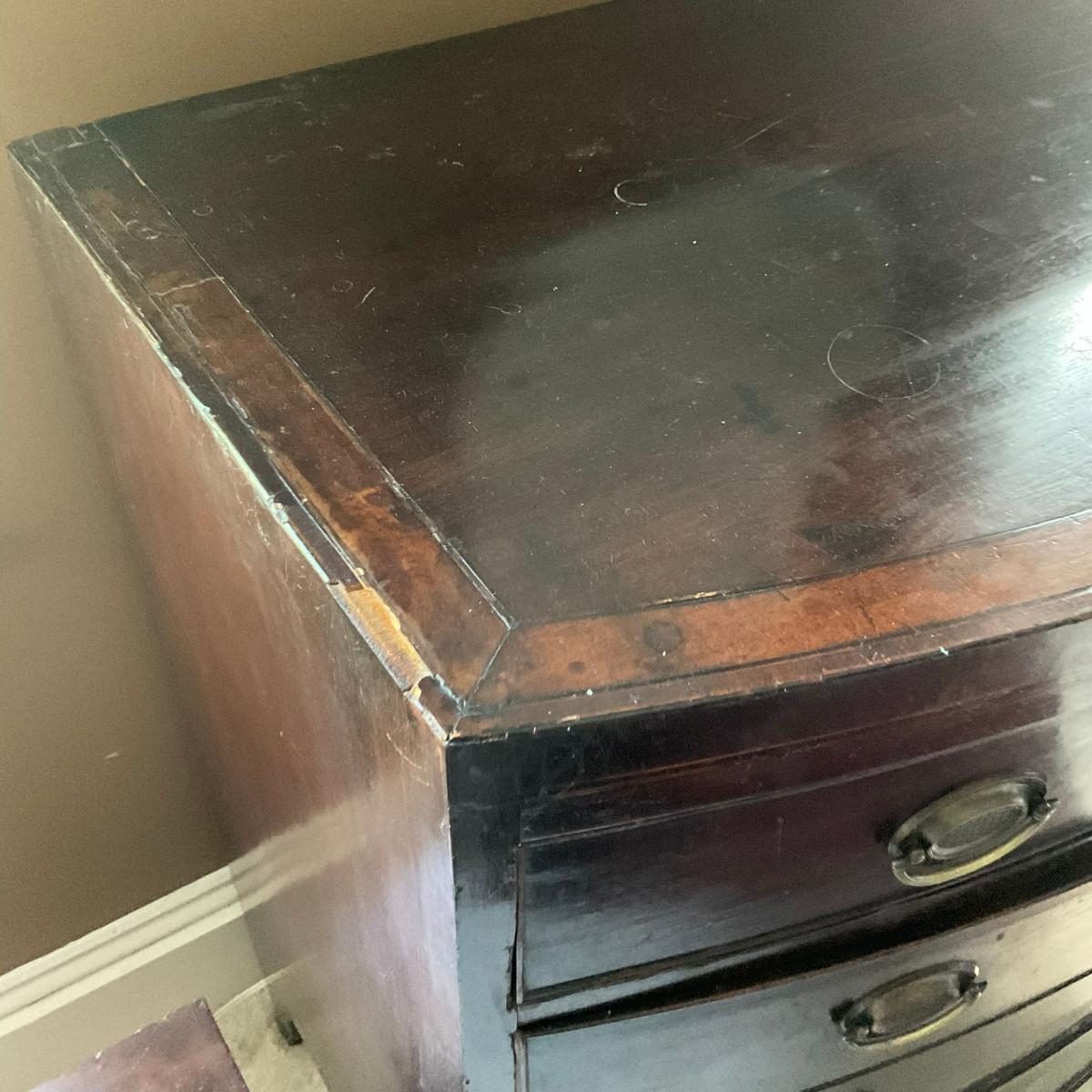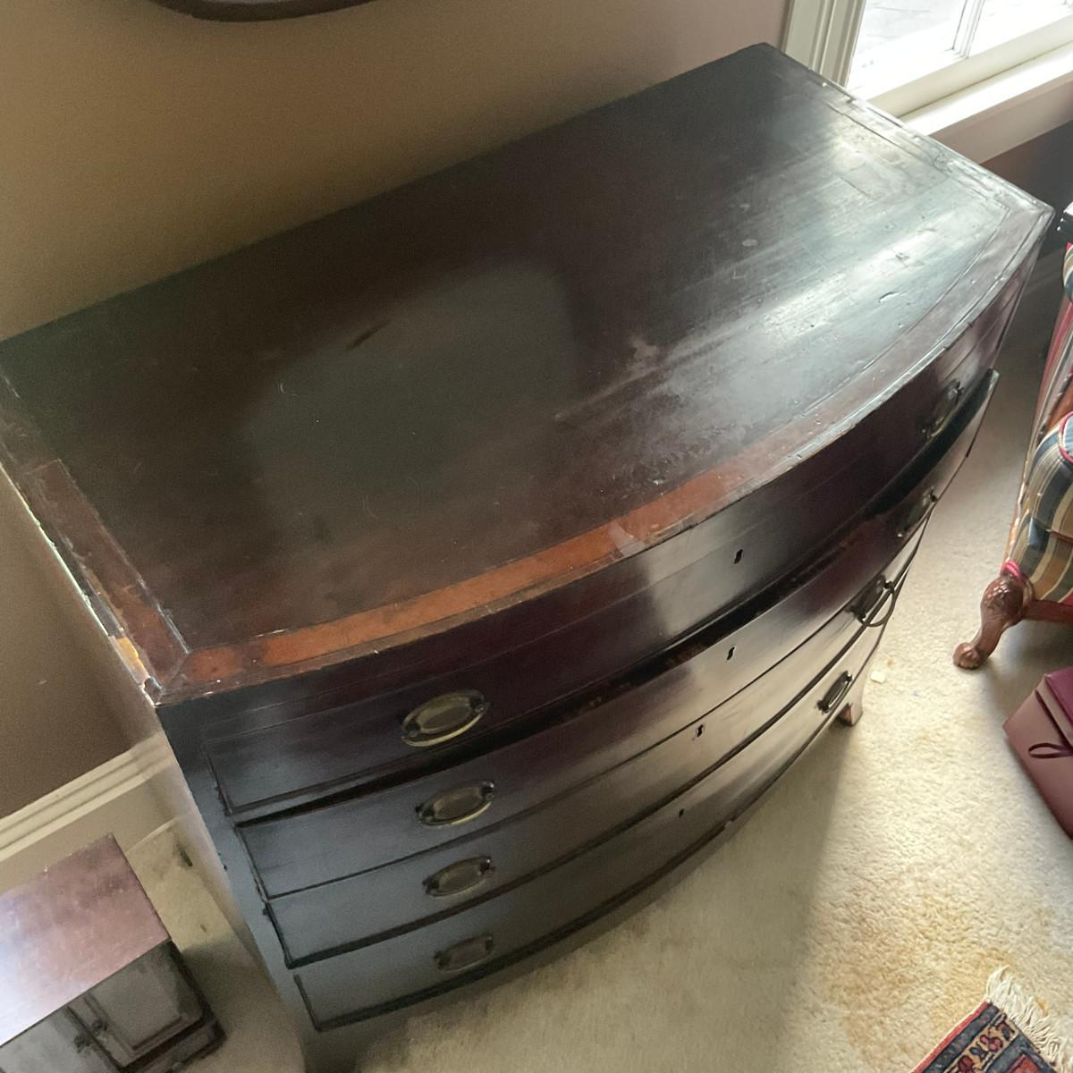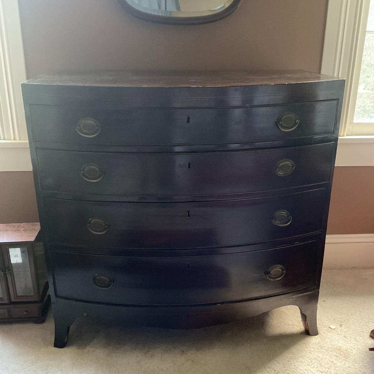 C211 Antique Hepplewhite Bow Front Four Drawer Dresser