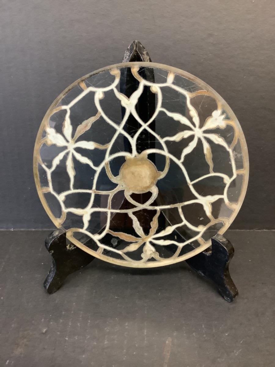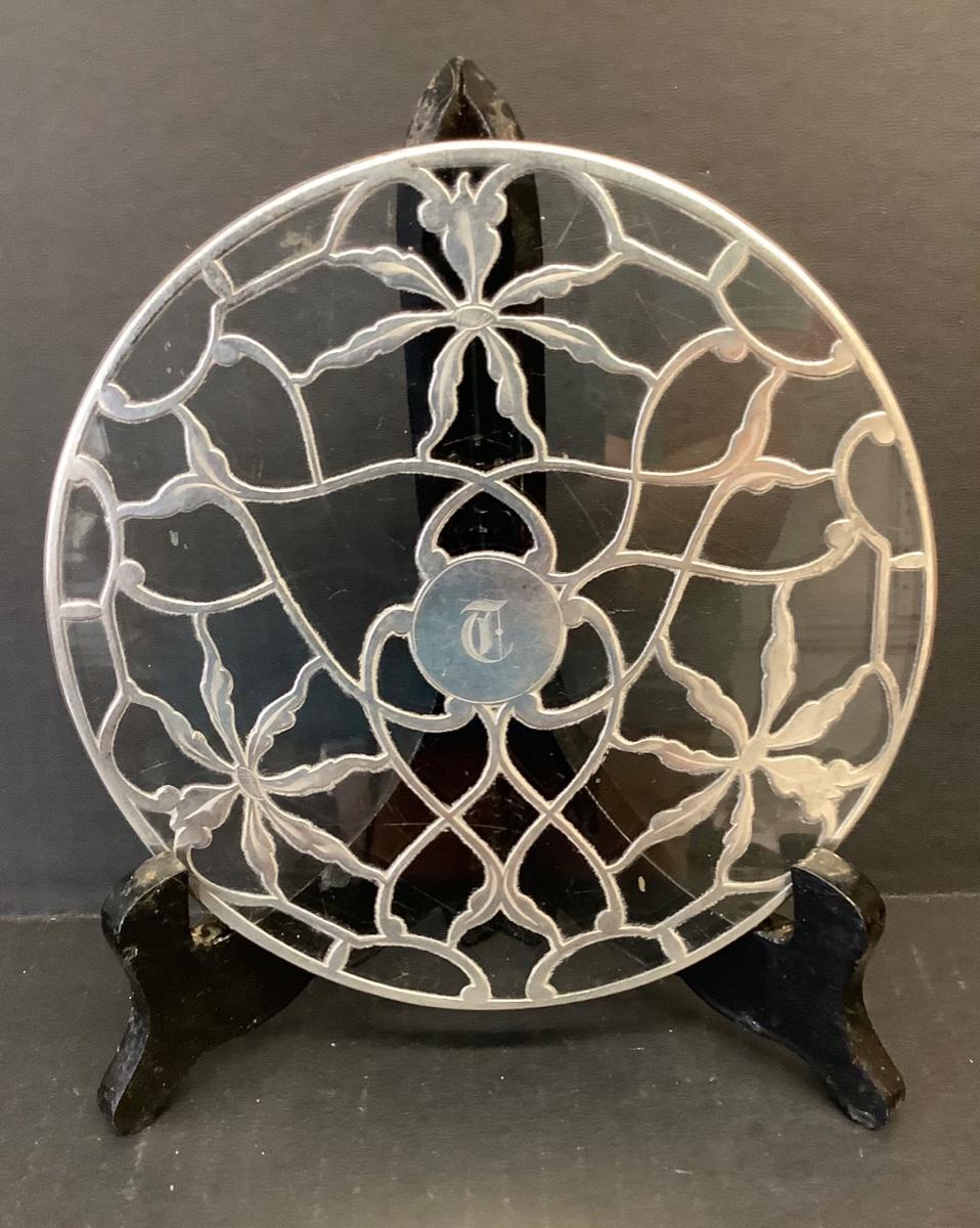 C2182 Vintage Monogrammed Silver and Glass Hot Plate