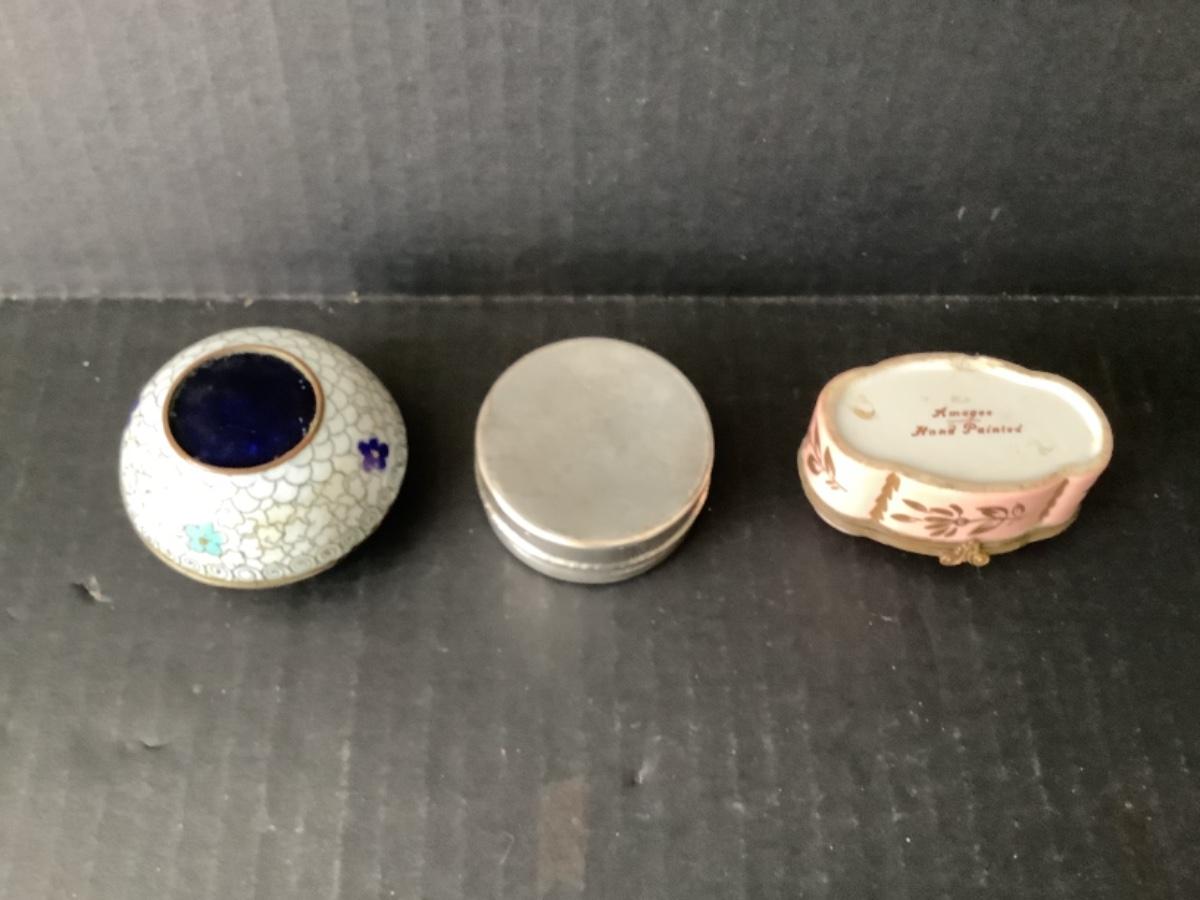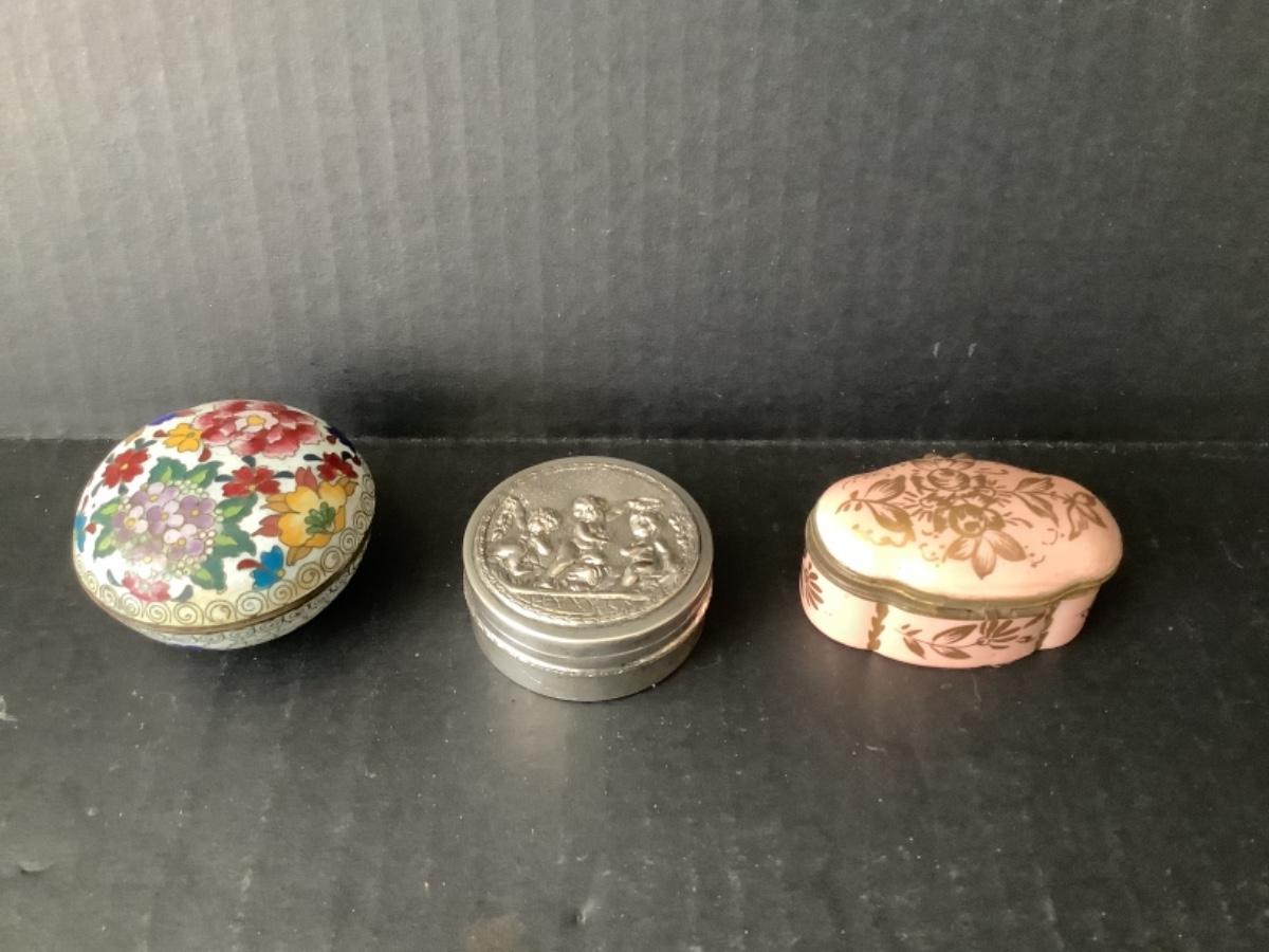 I porcelain Amogee trinket box, 1 enamel trinket box and 1 metal trinket box