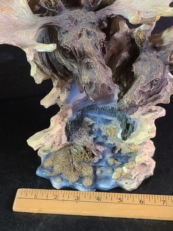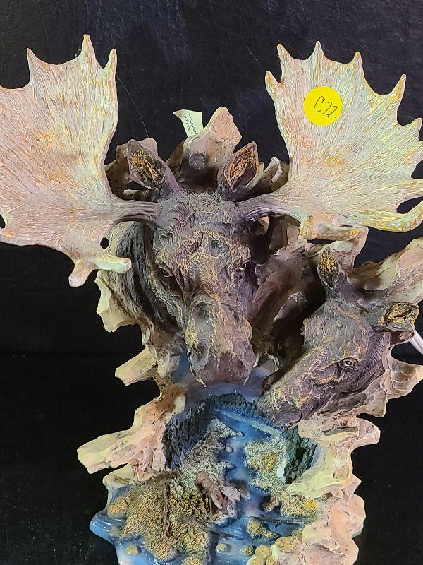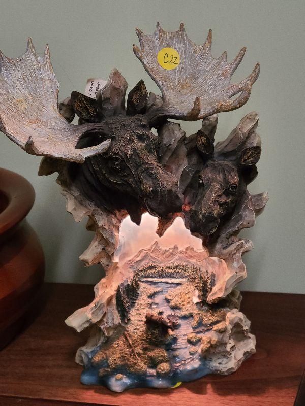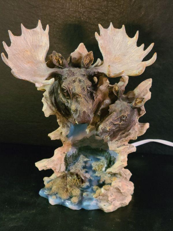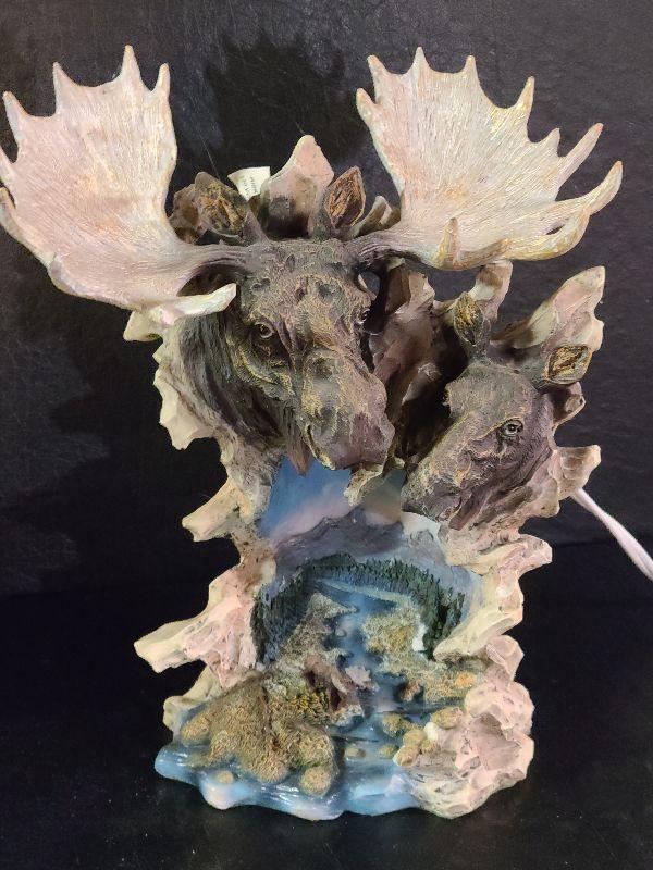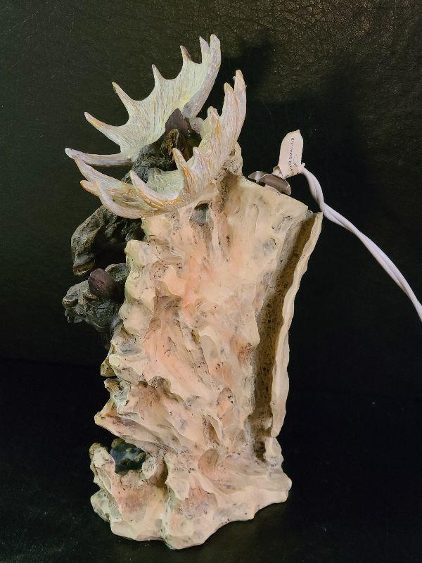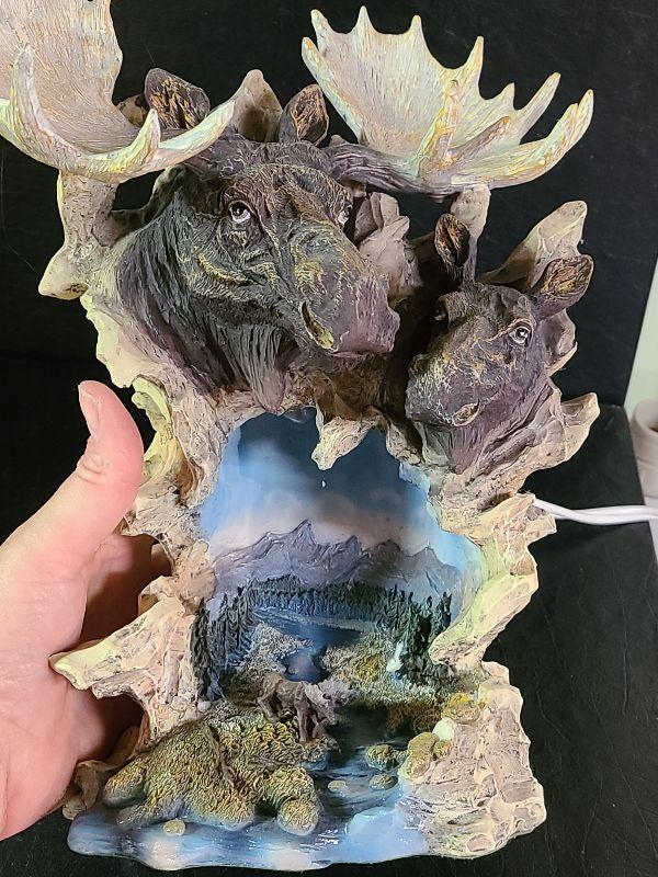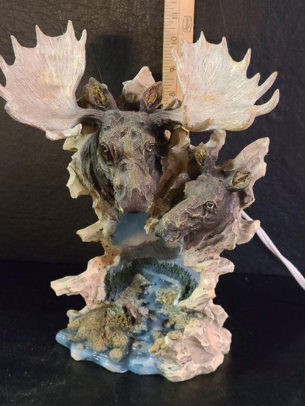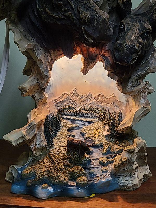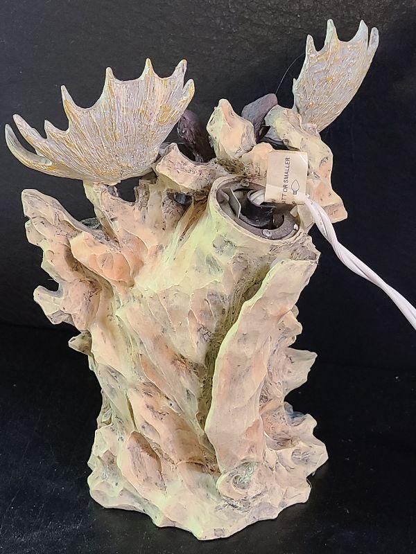 This is a unique lamp and works great. You can see it the last picture the lamp puts off a nice glow! Great for lake house or lodge! Please see pics for sizing and condition