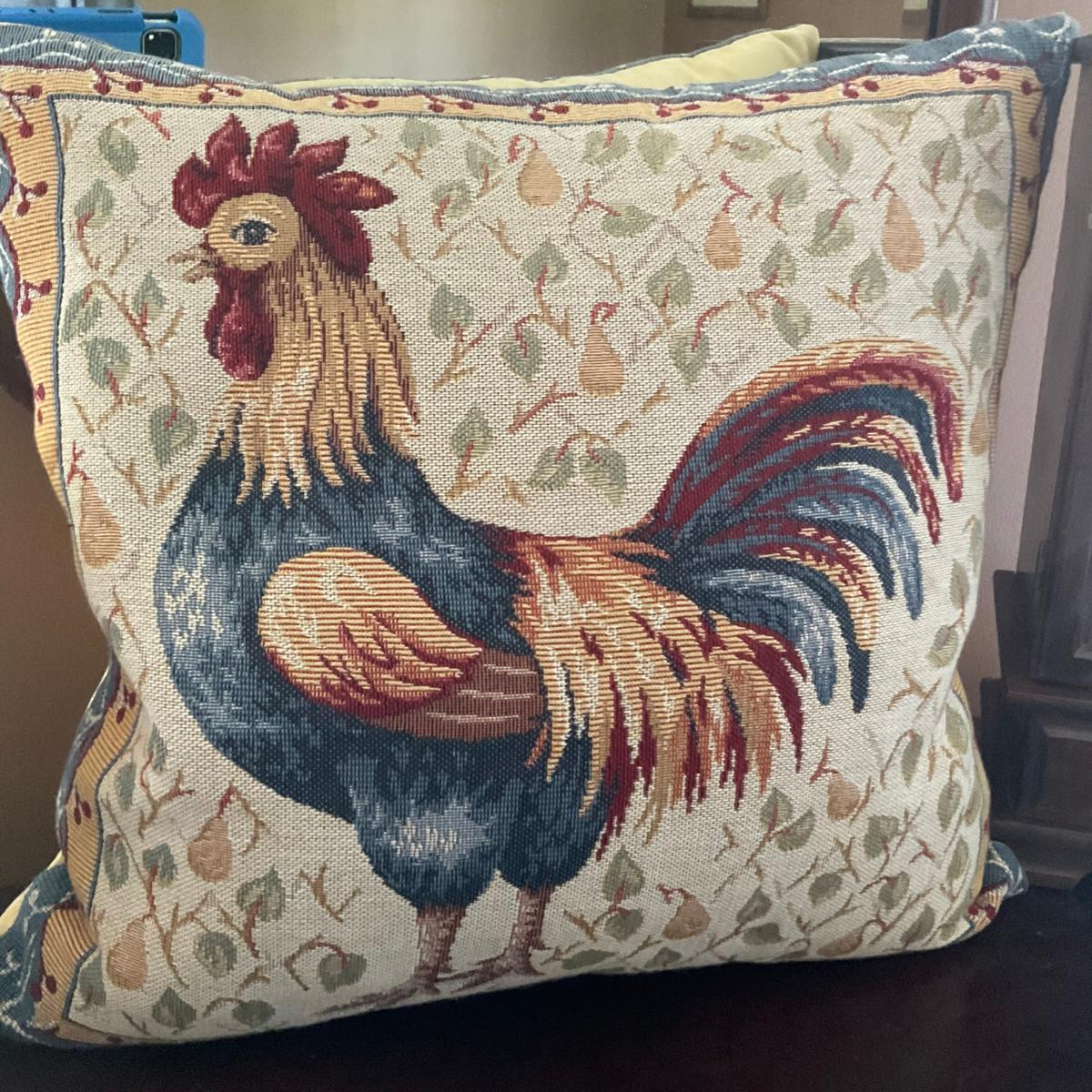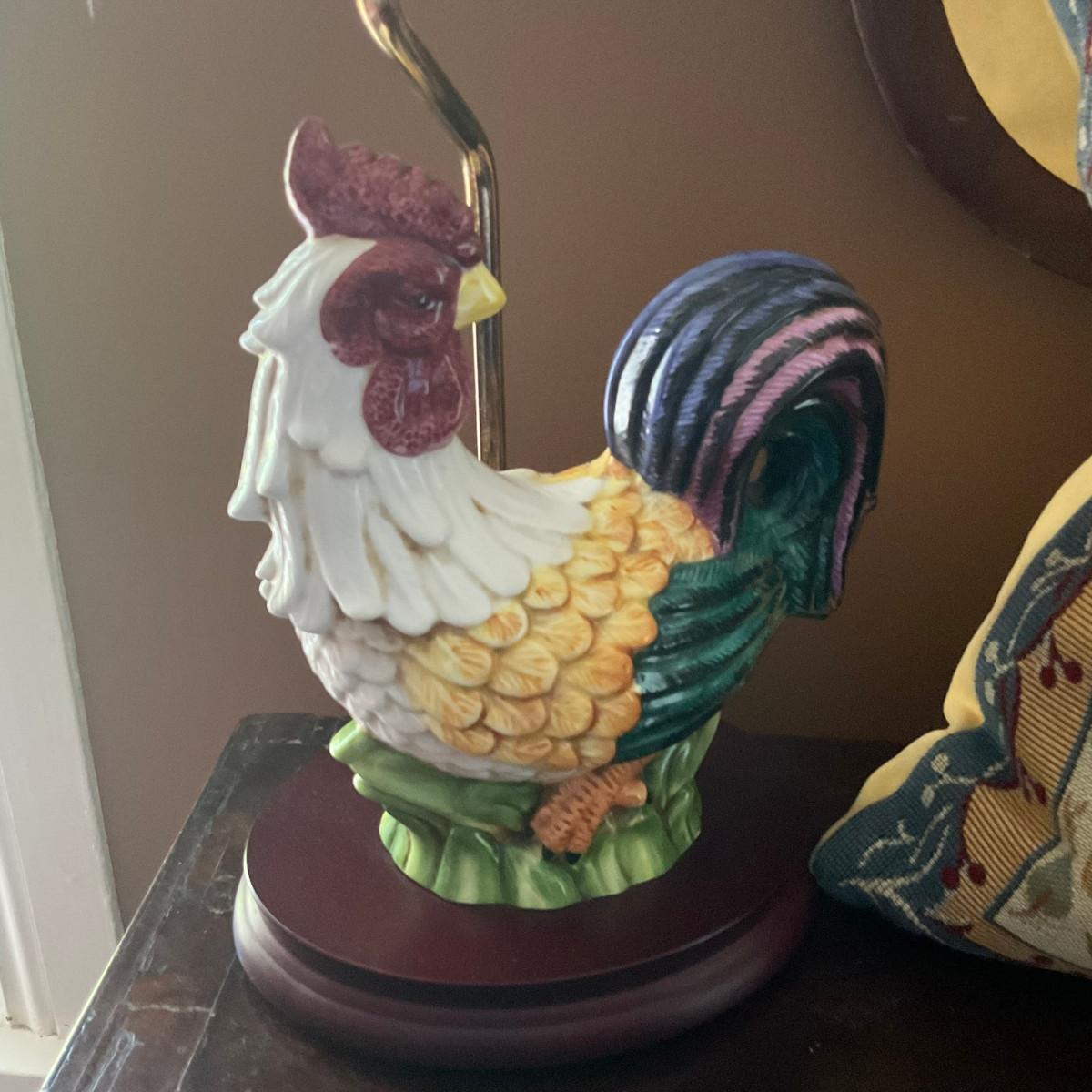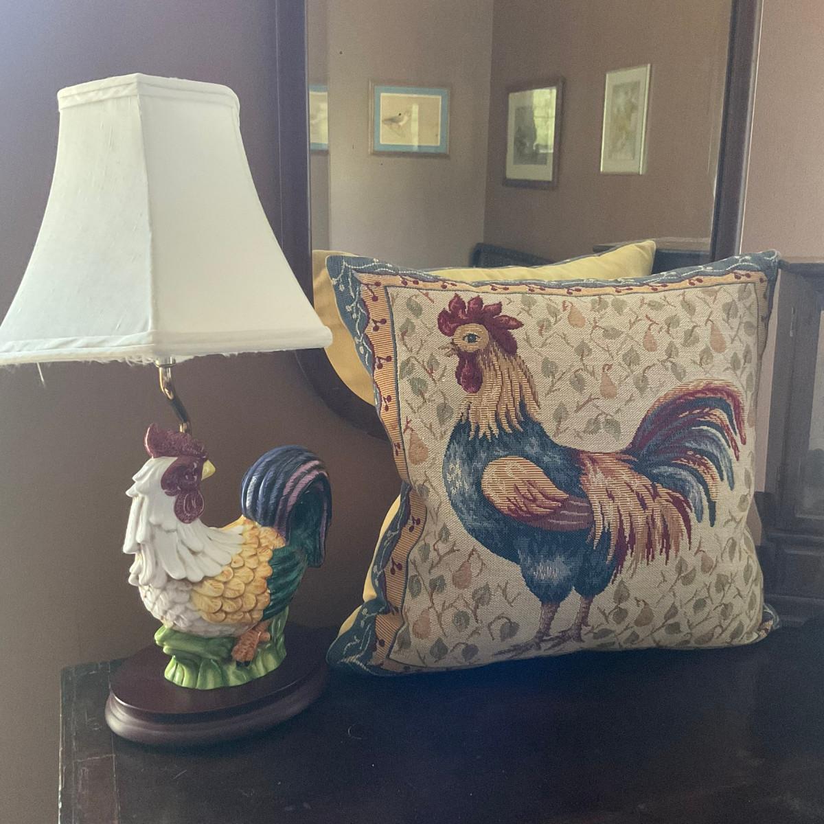 C221 Ceramic Rooster Lamp & Tapestry Down Pillow