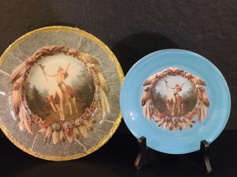 Handmade decoupage plate decorations. Please see pics for how they were made, sizing and condition