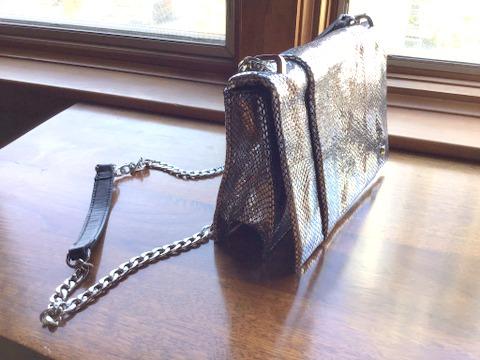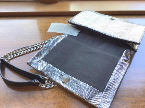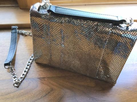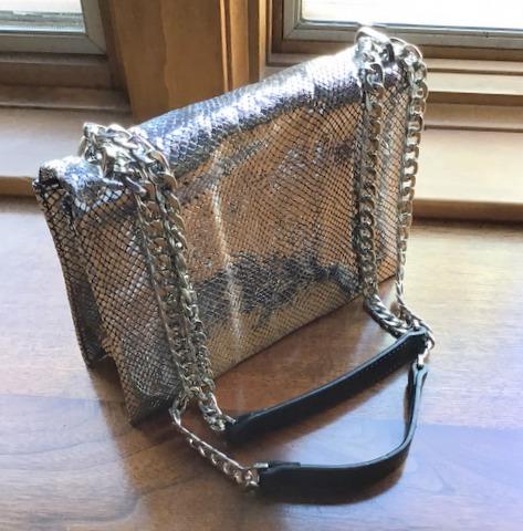 The double chain handle can be worn as a crossbody or shoulder bag.