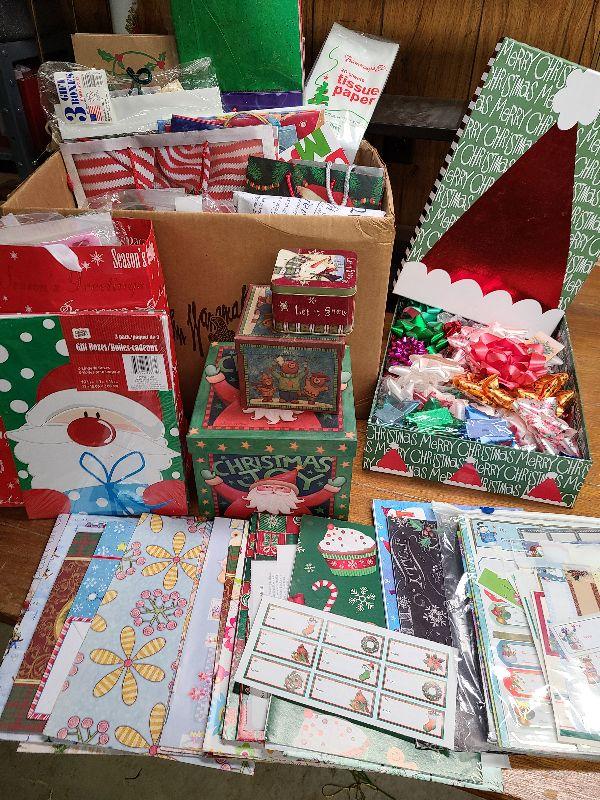 C240: Huge Lot of Christmas Wrap, Boxes, Bags and Tags!