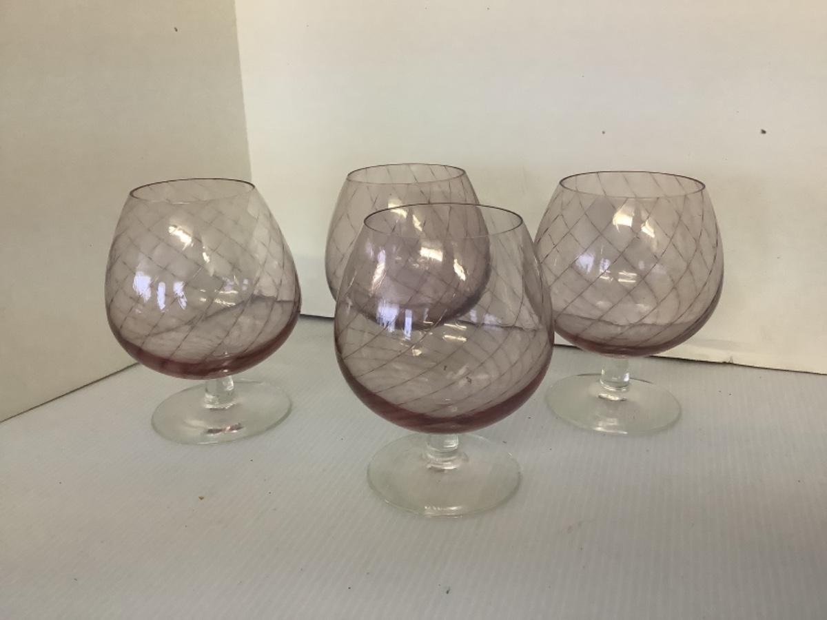 Excellent condition set of 4 Purple swirl glass brandy snifters