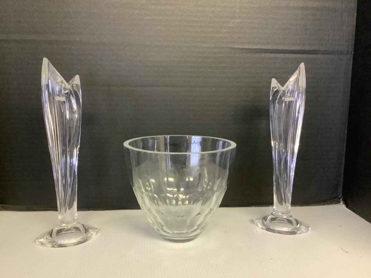 C244 Pair of Waterford Marquis Palma Candlesticks & Vera Wang Bowl
