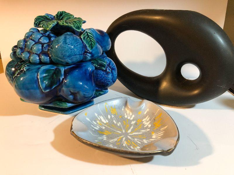 C25:  Mid Century Modern Vase, Ashtray, and Fruit Canister