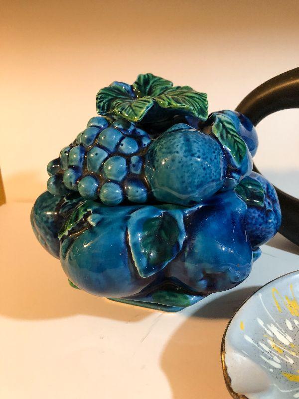 This is a nice lot of mid century modern décor. Please see pics for content of the lot, size of the items, and the condition. The fruit ceramic décor does have chips. Thank you for looking and have fun bidding.