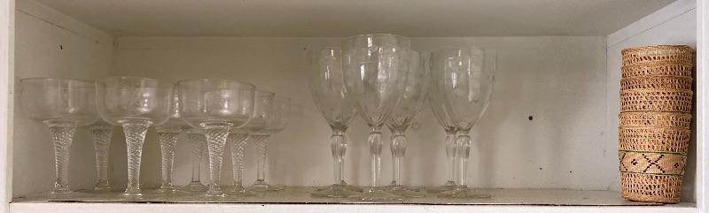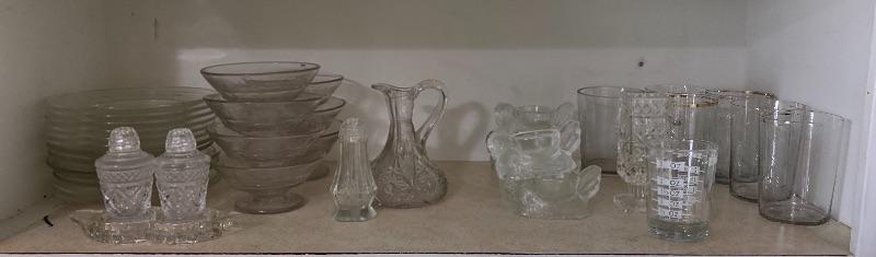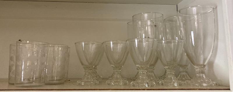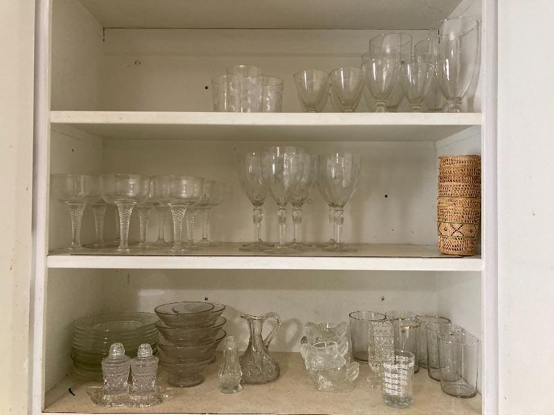 Pressed glass, cut glass and vintage glass items. Four sets of glasses