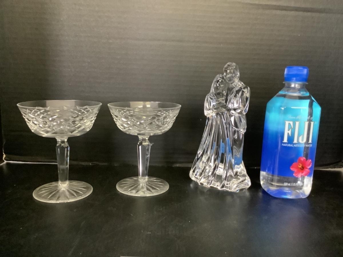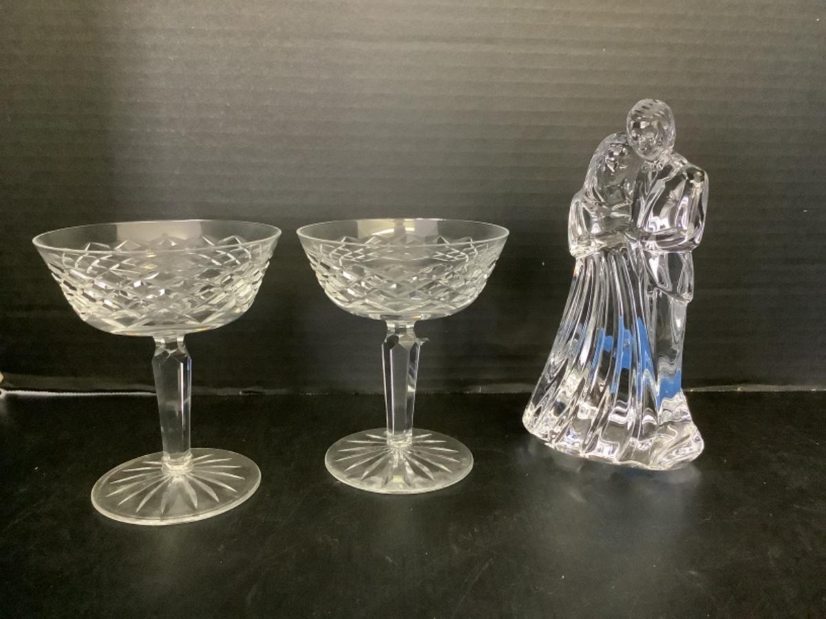 C254 Waterford Crystal Bride & Groom with 2 Alana Champagne Glasses