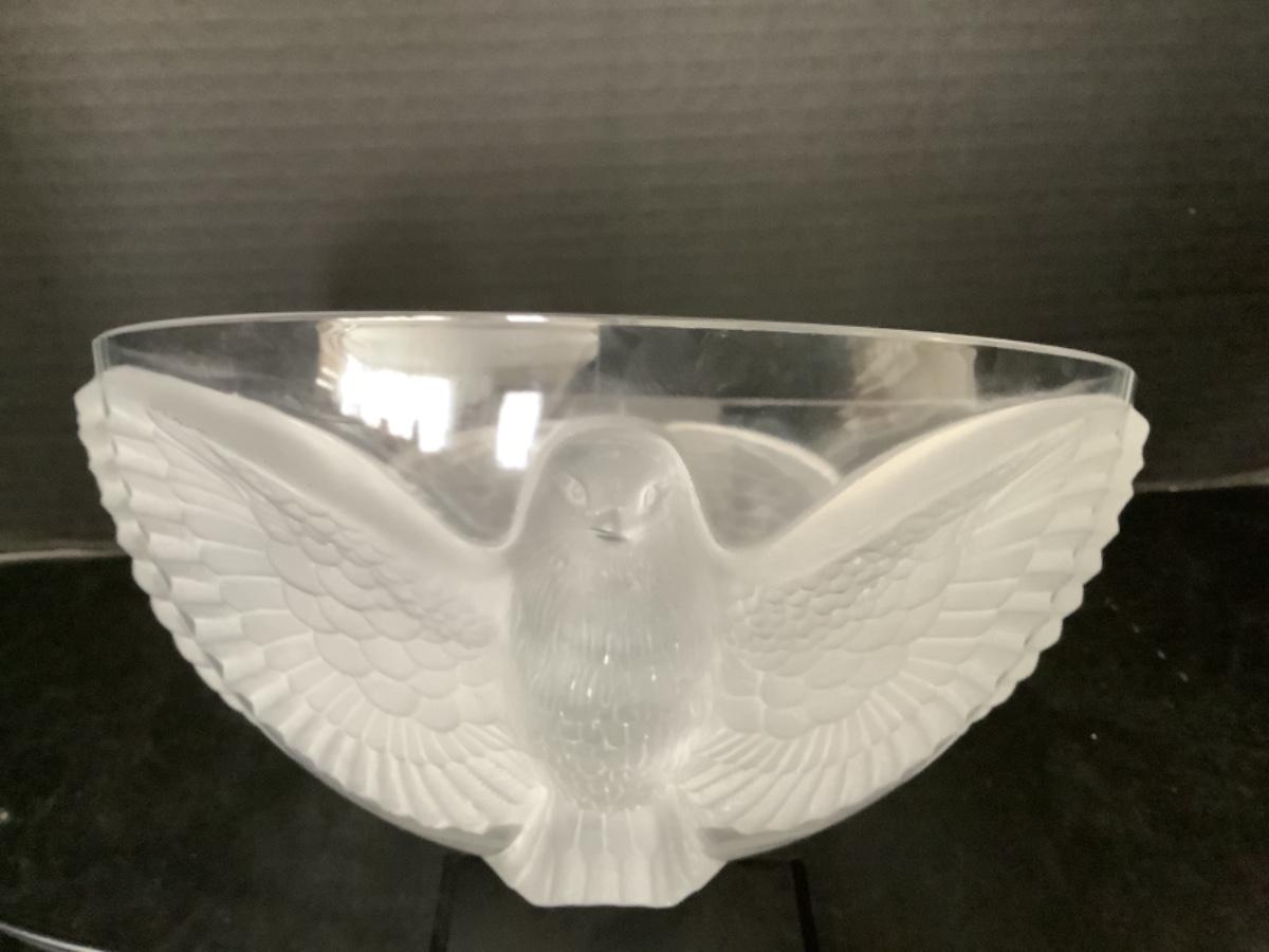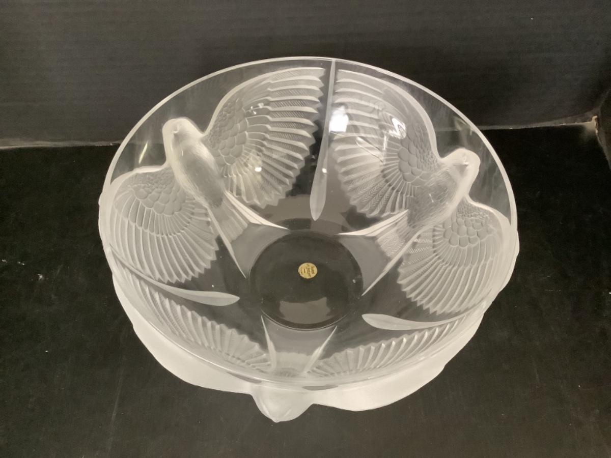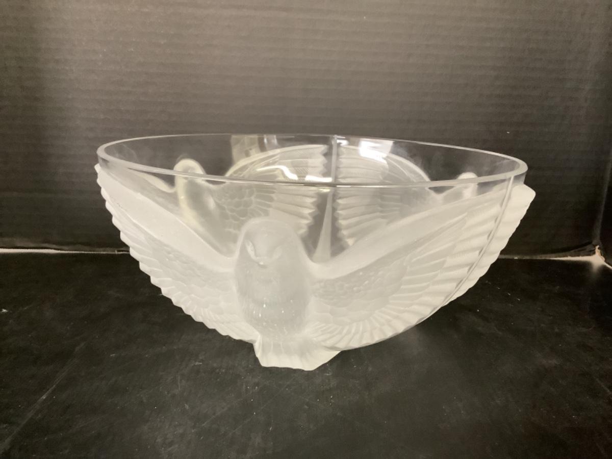 Beautiful 10” round Crystal bowl with a satin finish bird bowl
