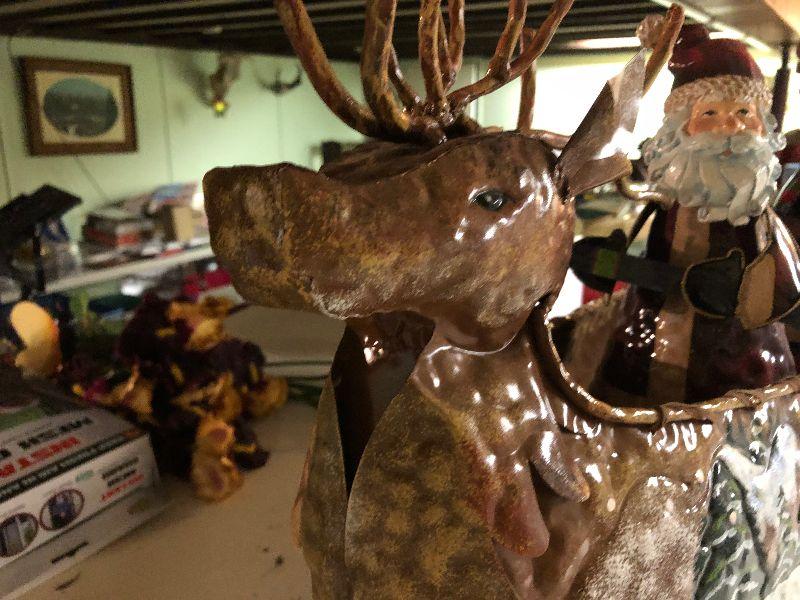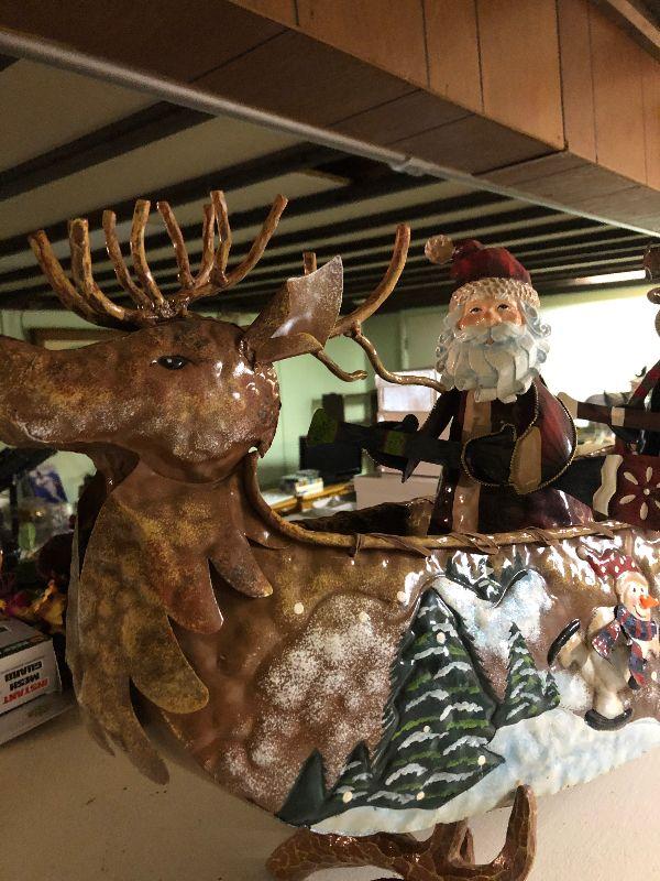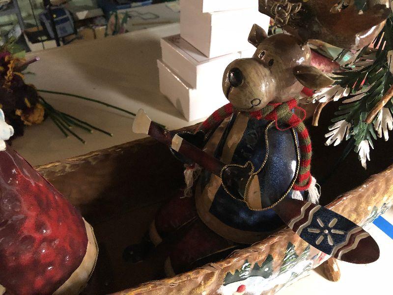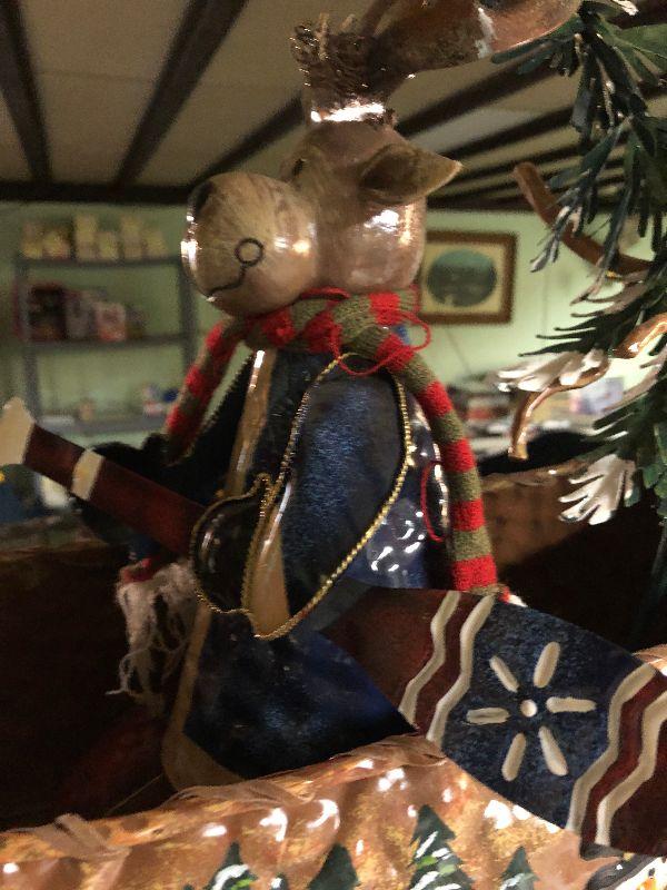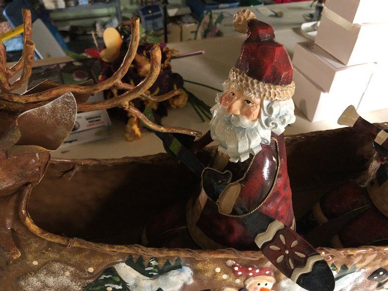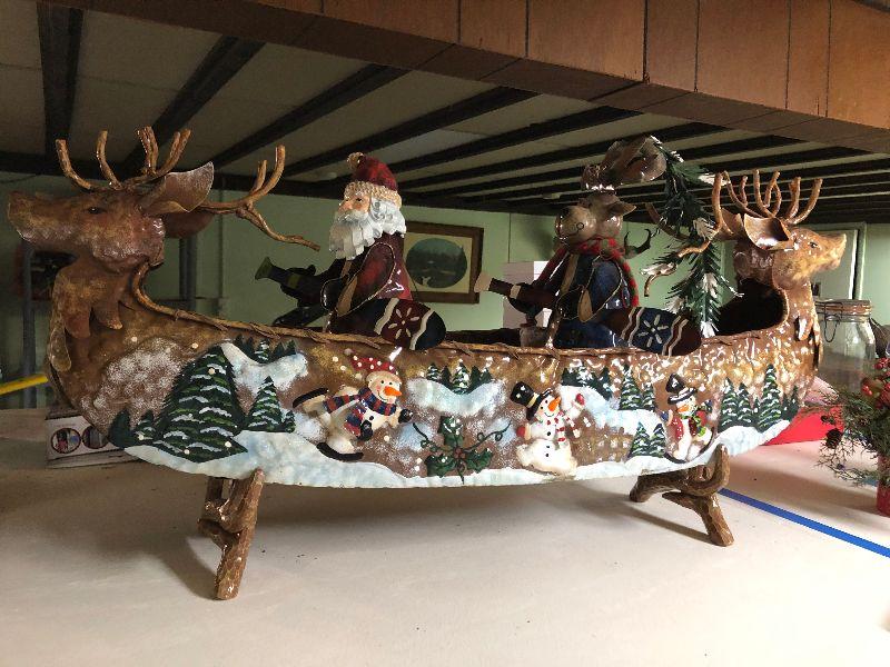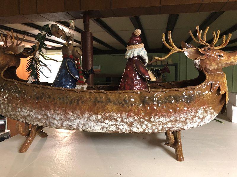 C267: Almost 4 foot Long Santa & Moose Christmas Canoe Display!