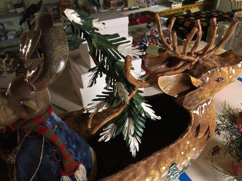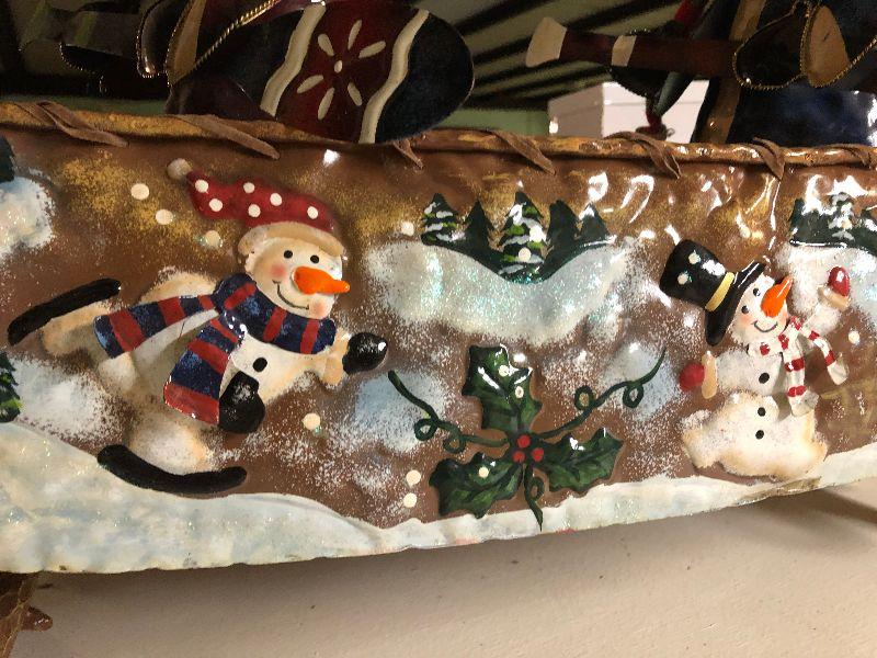 This is so cool in person! Would look great at home or winter home for holiday decorating! Please see pictures for contents of lot, condition, and sizes. Happy Bidding!