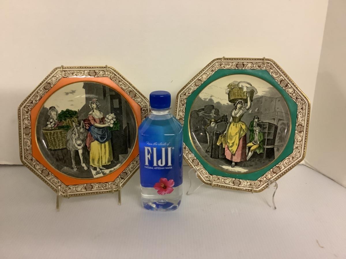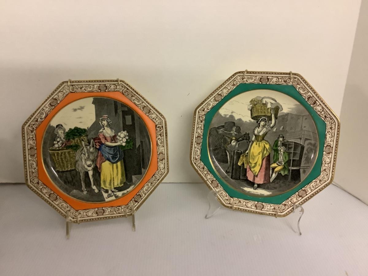 C289 Two Vintage Adams China Octagonal Luncheon Plates “Cries of London”