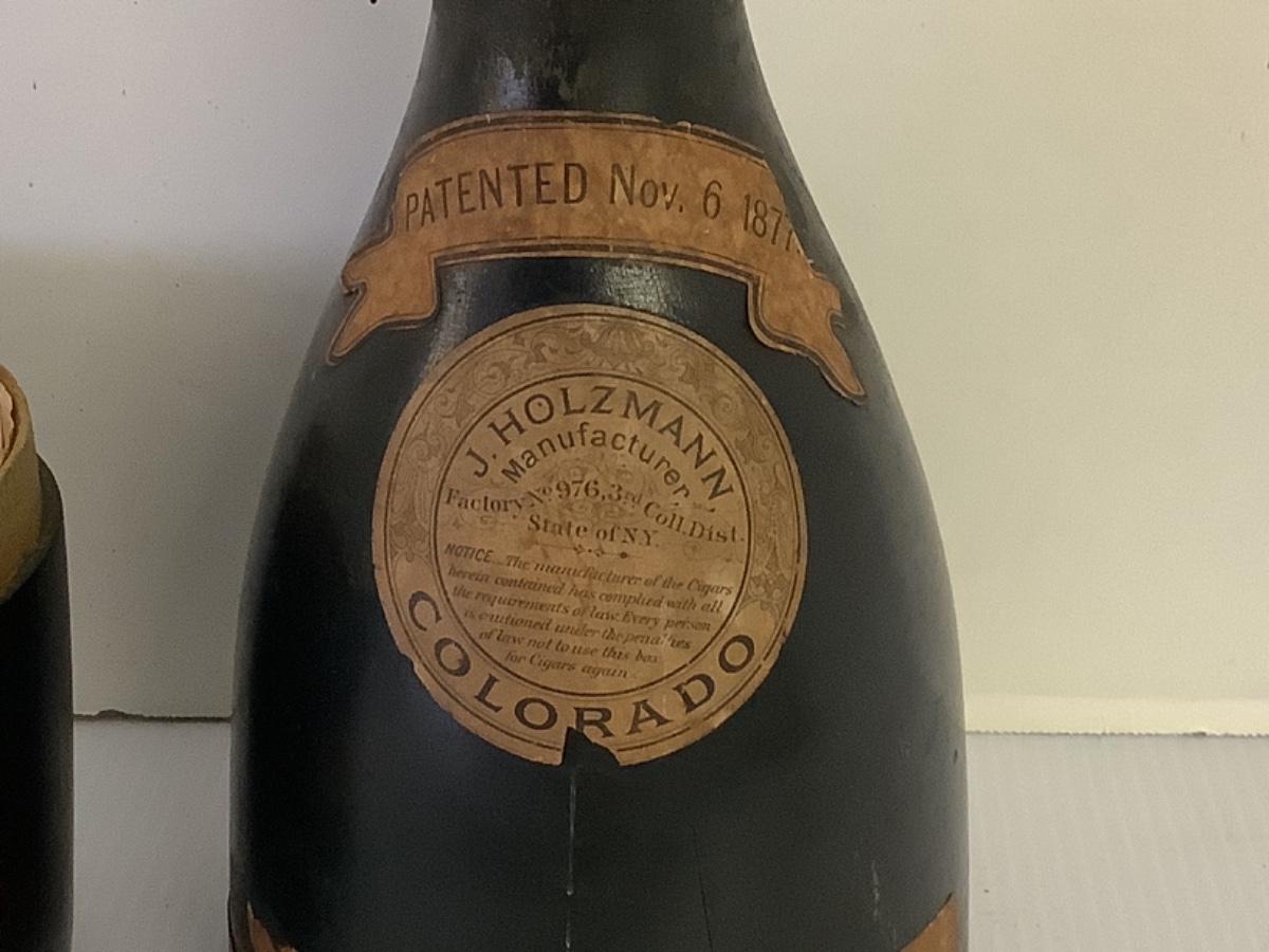 Patented in 1877, these hand turned wooden bottles held 25 cigars and were a blatant copy