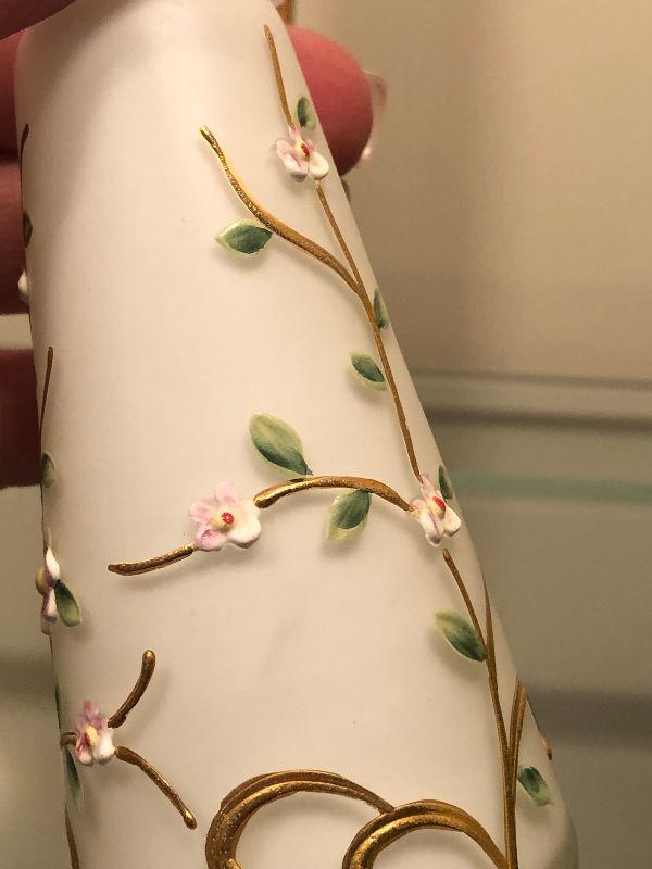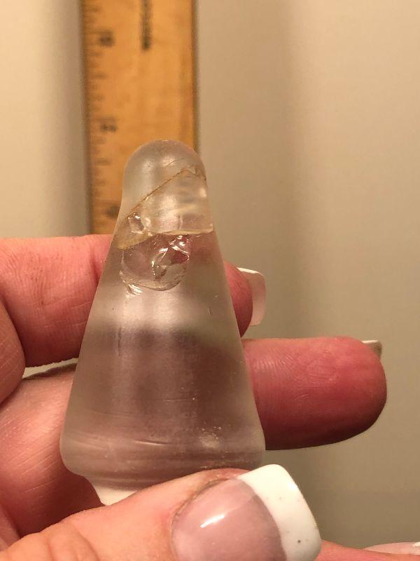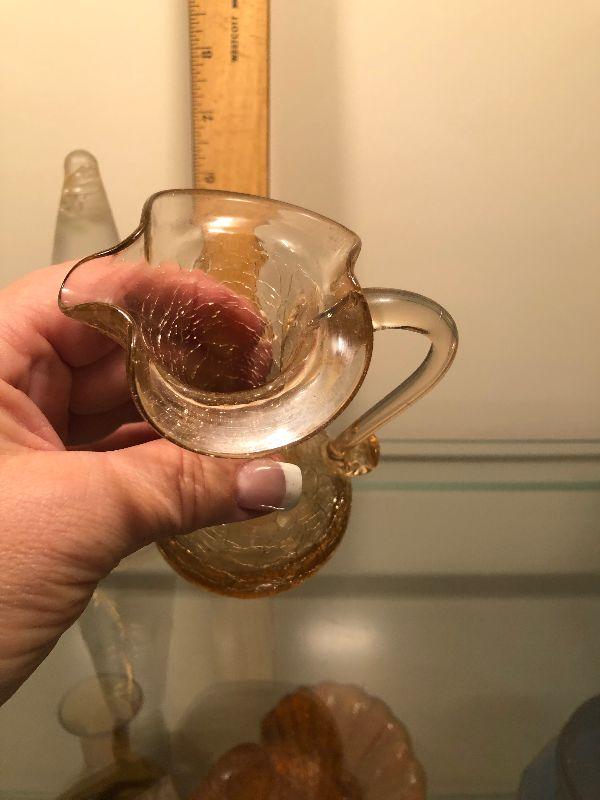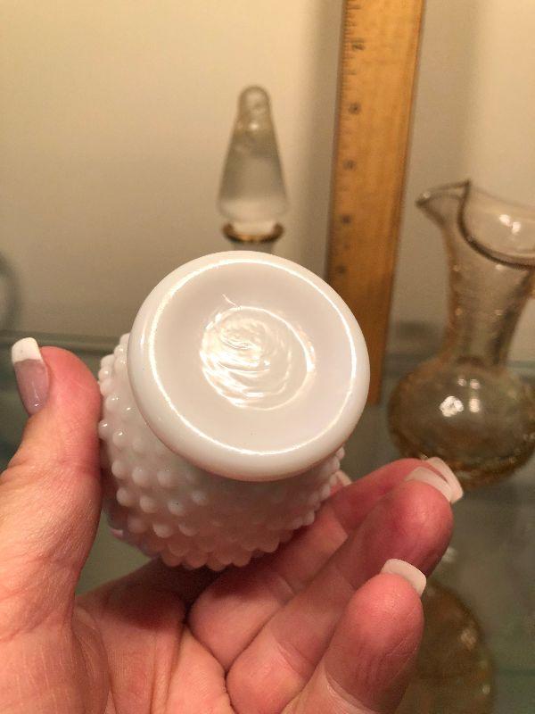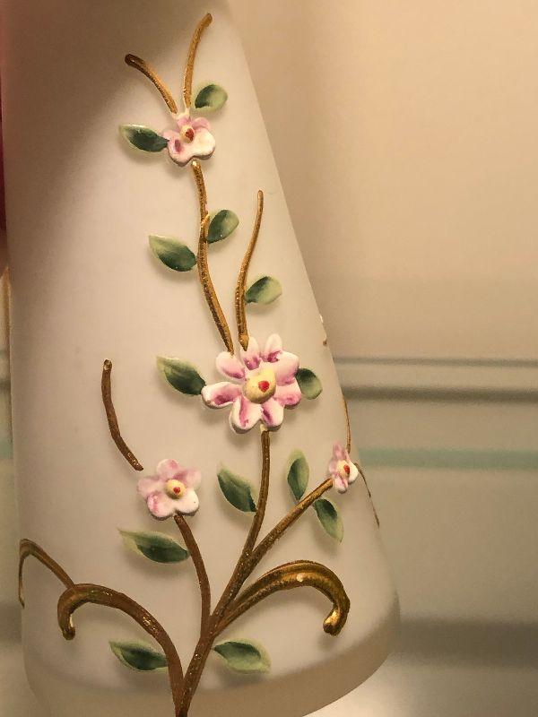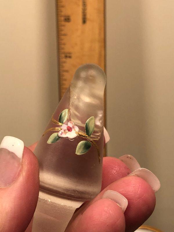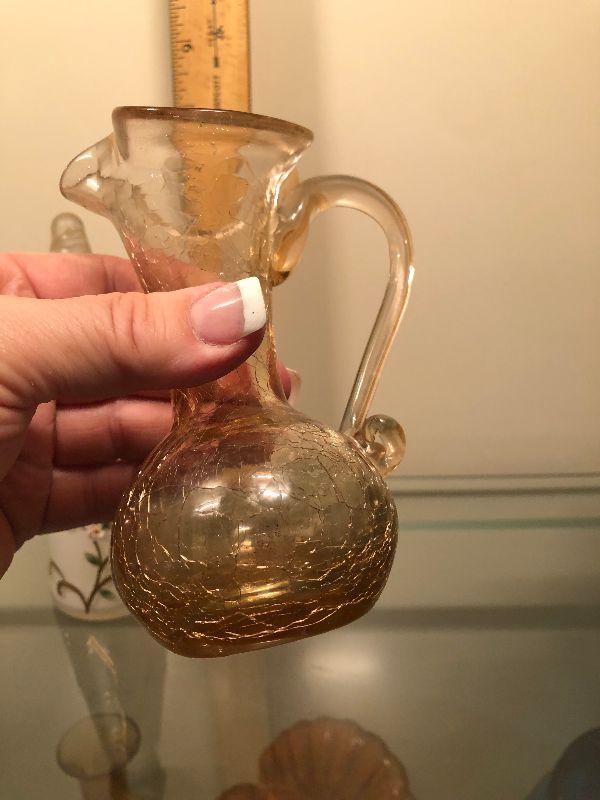 Vintage Irice perfume bottle, see picture for condition. Also, a hobnail vase with pink interior, and a crackle glass vase.